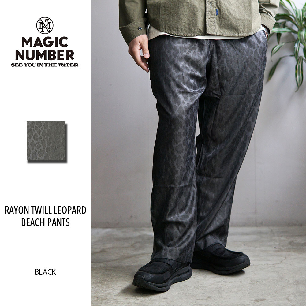MAGIC NUMBER / RAYON TWILL LEOPARD BEACH PANTS / BLACK / 26SS-MN006