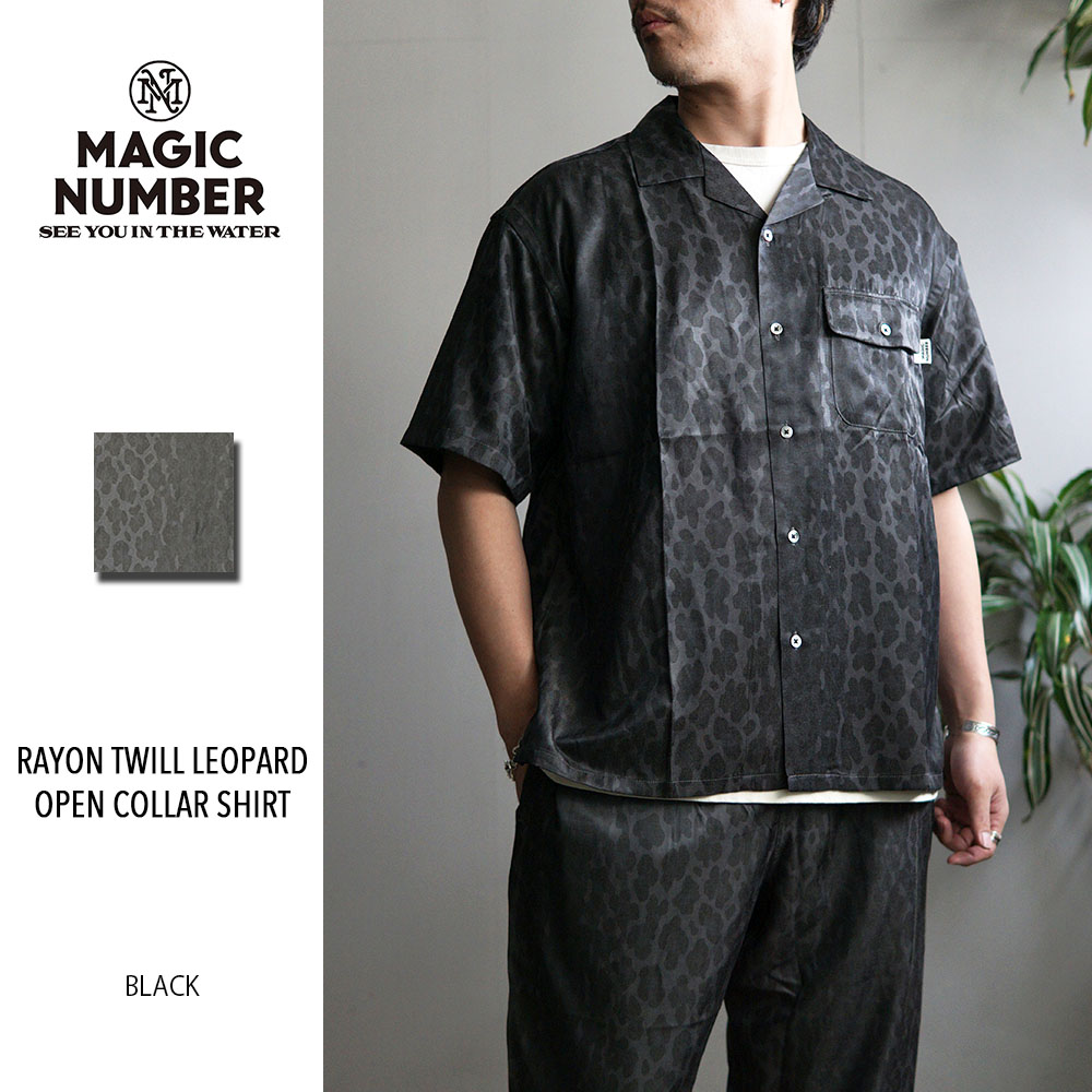 MAGIC NUMBER / RAYON TWILL LEOPARD OPEN COLLAR SHIRT / BLACK / 26SS-MN005
