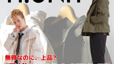 岡山発ブランド H.UNIT / エイチユニット が今季新作としてリリースした [HBT Hooded JK / ヘリンボーンツイルフードジャケット] をご紹介しています。ミリタリー由来の無骨さと、現代モダンデザインの融合がかなえた渾身の一着を是非!
