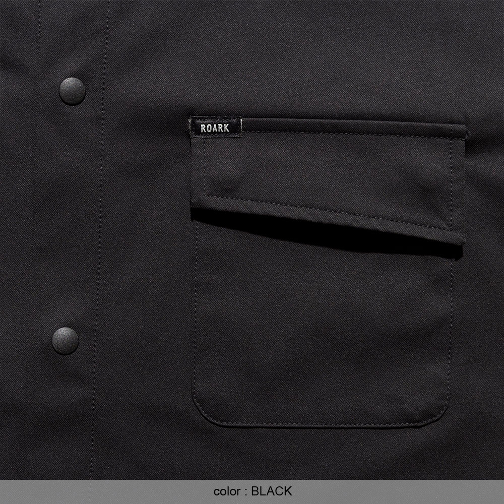 フラップがついたアイキャッチな立体的ポケットや、スナップボタンにもROARKらしい無骨さと機能性が光ります。