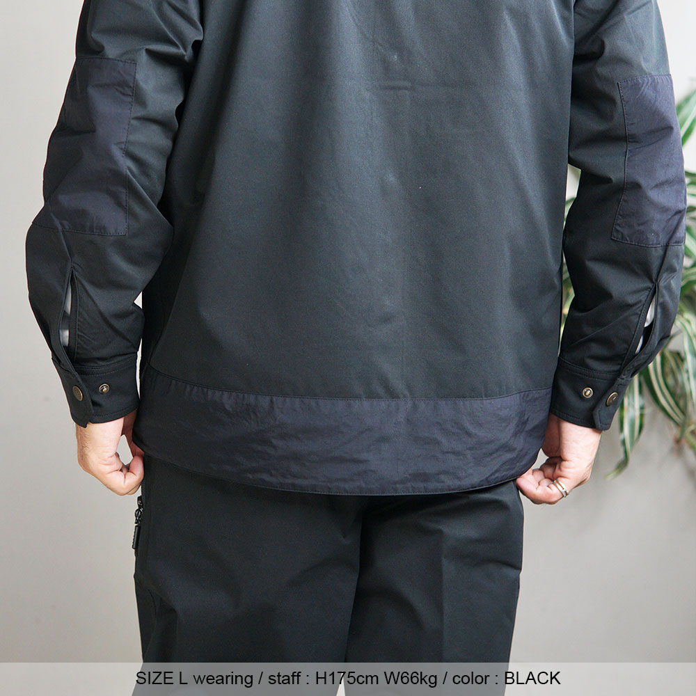 肘・裾周りの補強生地にコーデュラタイプライターで切り替え、ギミックがきいた絶妙なアクセント。