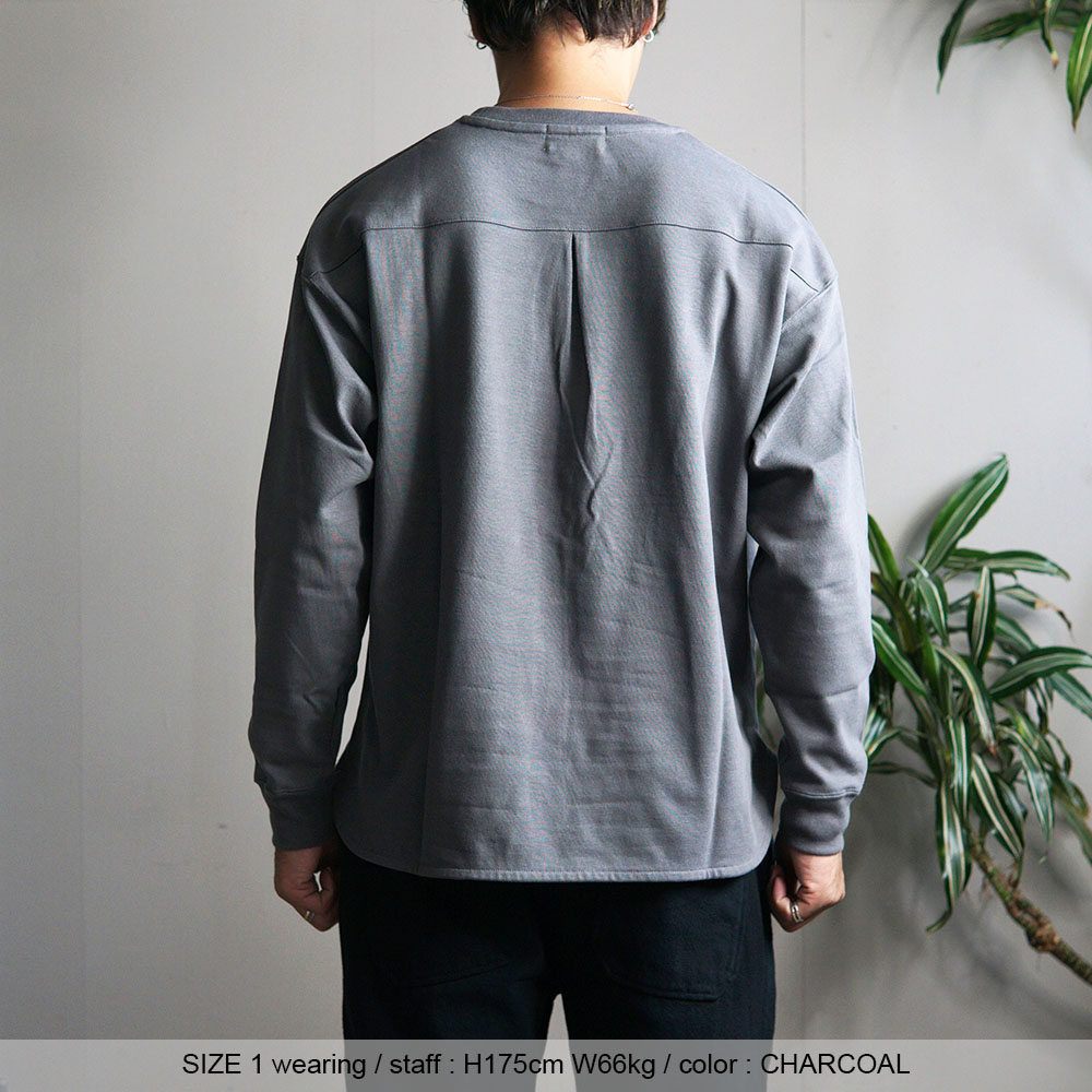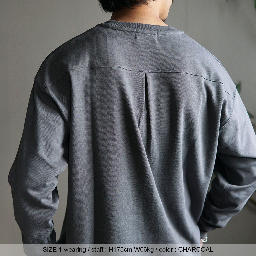 この素材を用い背面のヨーク下にタックを入れシャツのようなビジュアルに仕立てる、