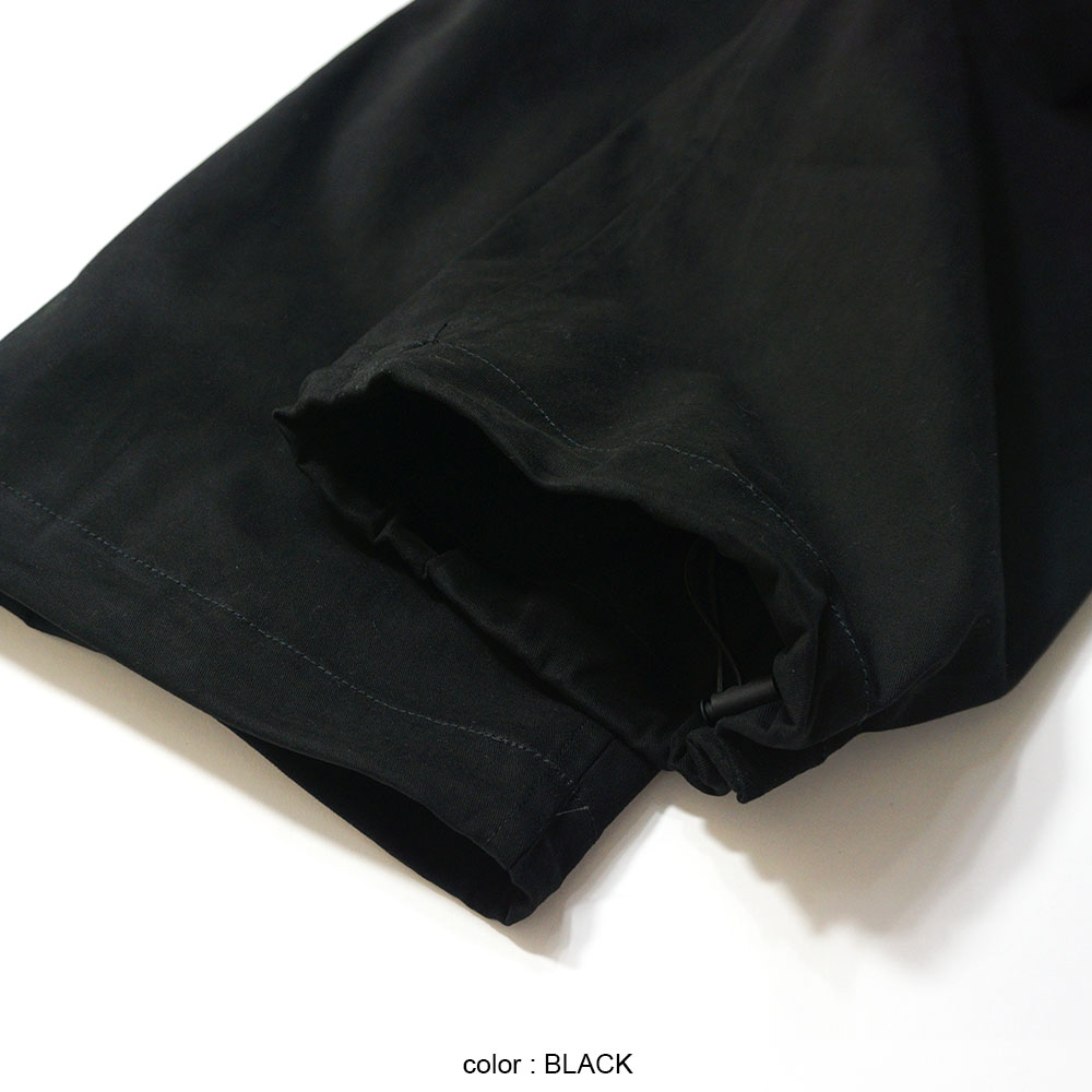 このbettakuらしい上品なルックスを活かし、 裾にはドローコードを通すことでトラウザーパンツのような着用が可能。
