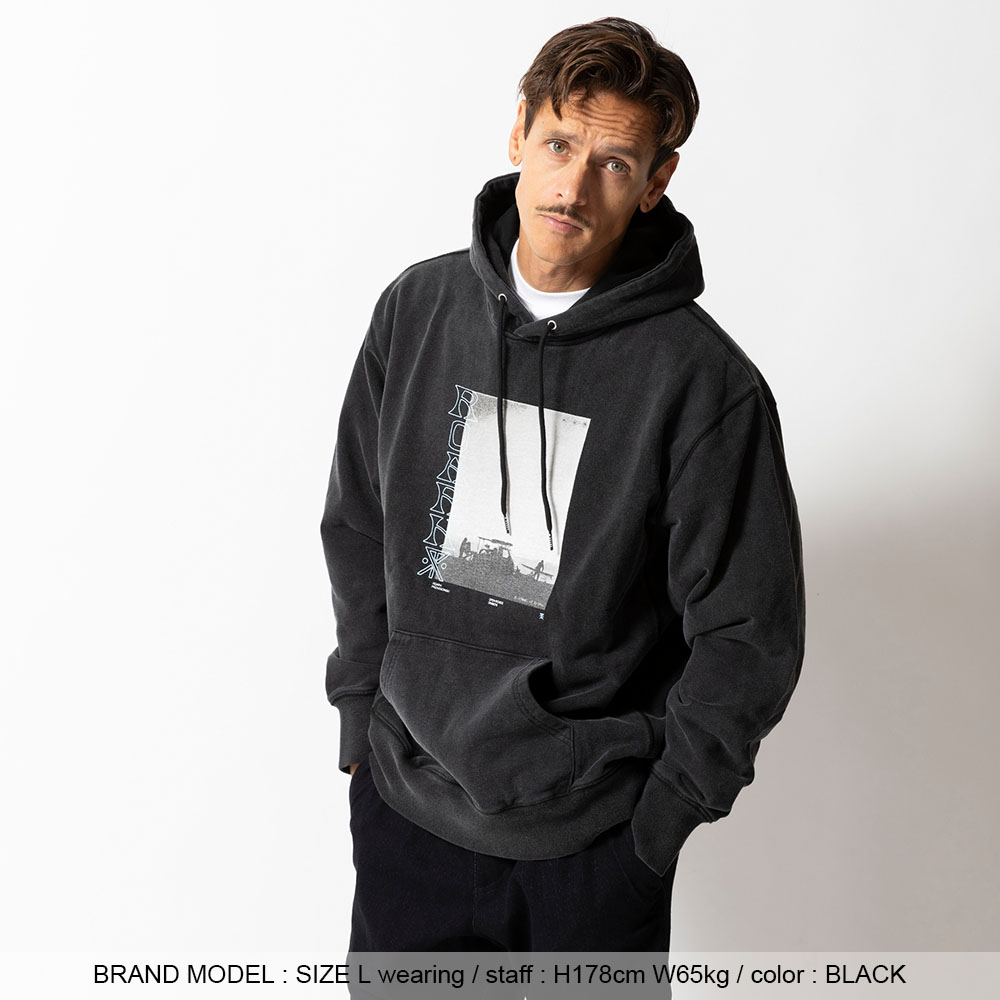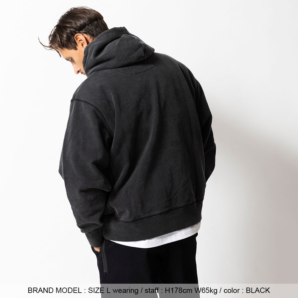 ヴィンテージライクな風合いと、都会的ムードを纏う新作プルオーバーフーディー。