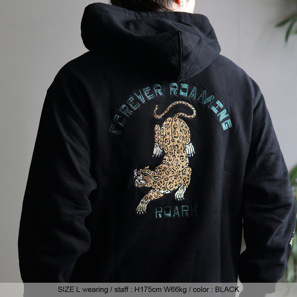 背面には象徴的なヒョウのグラフィックを贅沢に刺繍。