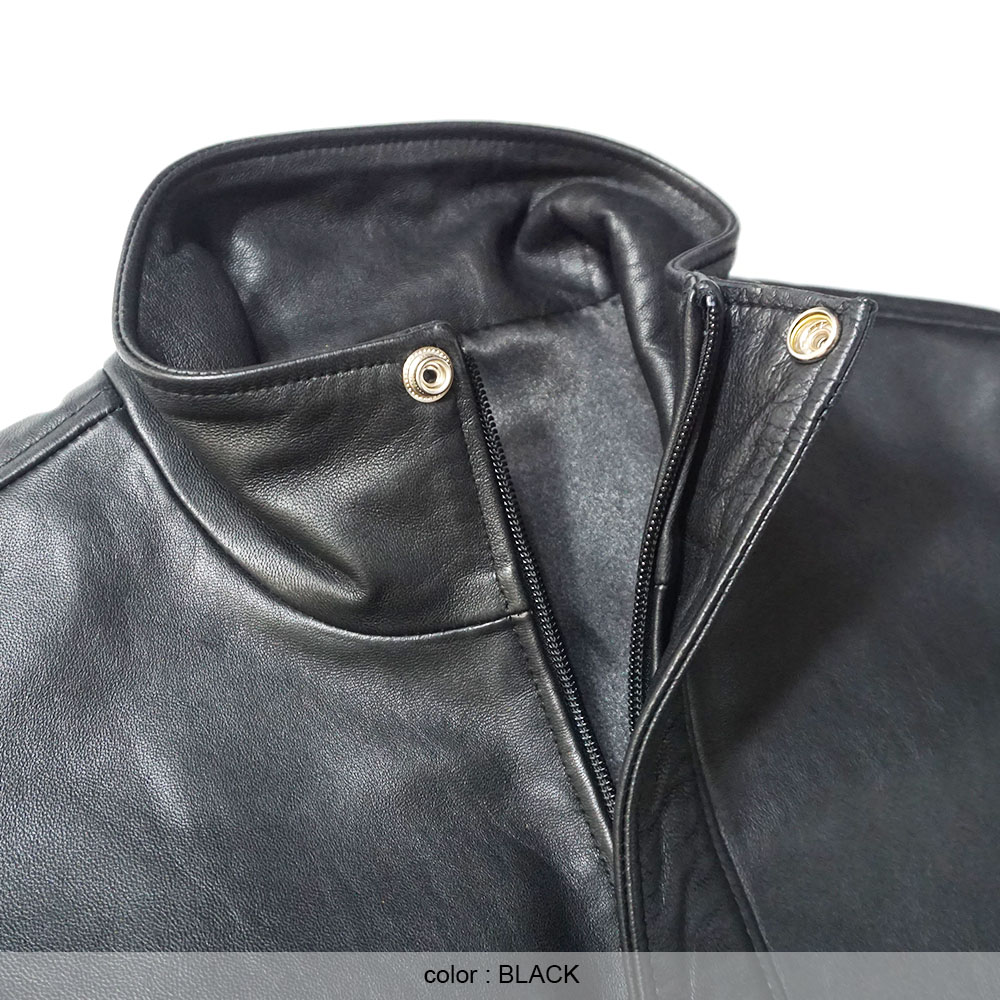 近年高騰を続けるレザーアイテムのなかで比較(SchottやU.A)をすれば約2分の1前後のプライスで、