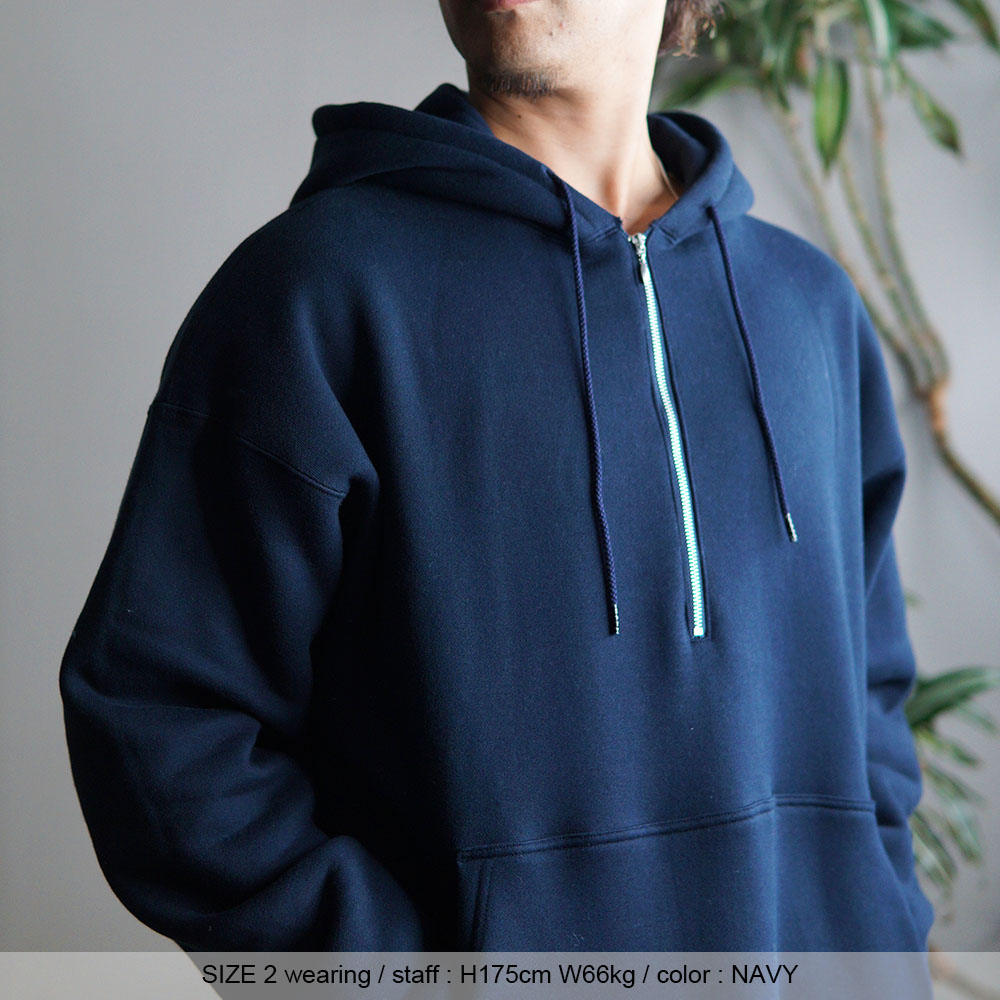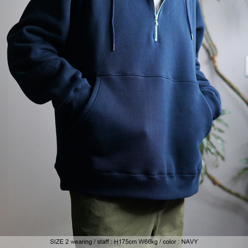 希少なアズマ編機でじっくりと時間をかけ織り上げる新作ハーフジップフーディ。