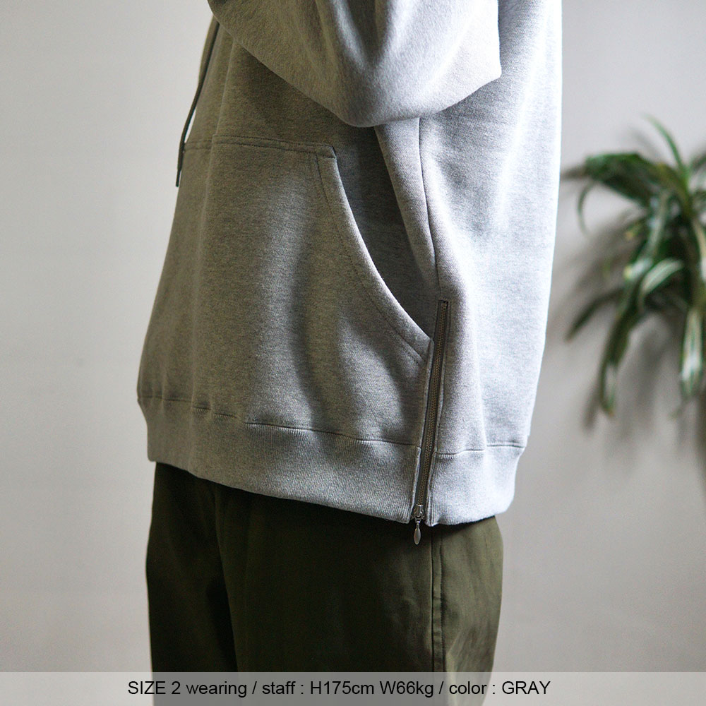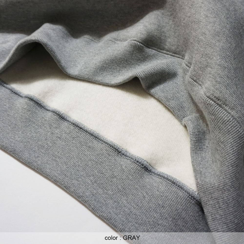 素材には希少な旧式編機で知られる「アズマ編機」を使用した、 ヘビーウェイト裏起毛生地を採用。