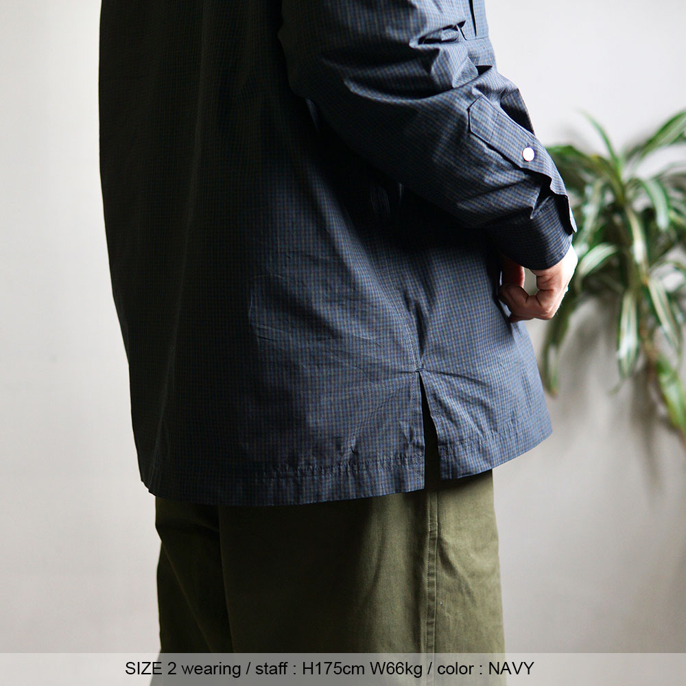 ハンティングやミリタリーウェアの要素を含みながらも、 肩幅からアームホール、そして身幅を広く設計したリラックスシルエットからは 『くつろぎを感じられるモノ』というブランドコンセプトとうまくマッチしてカジュアルダウンしすぎない印象です。