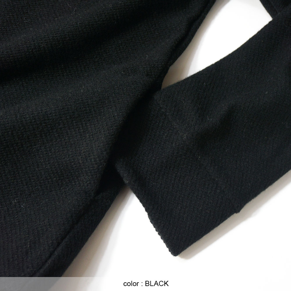 表側にはニットのようにふっくらとした見え方でありながら、 裏側にはポリエステルを組み合わせることによって、ダレにくいハリと着用を繰り返しても形の良さを長くキープします。