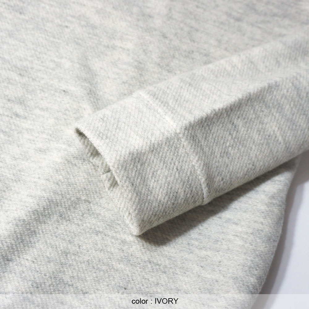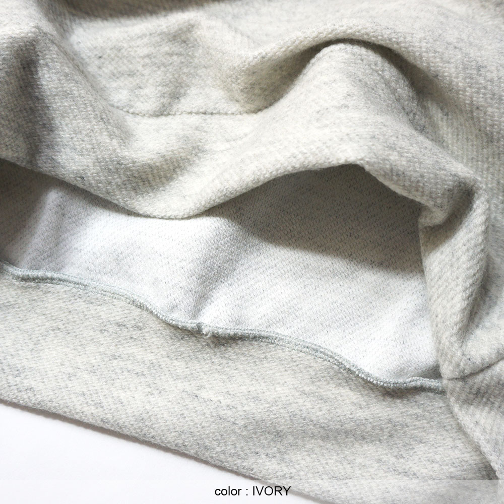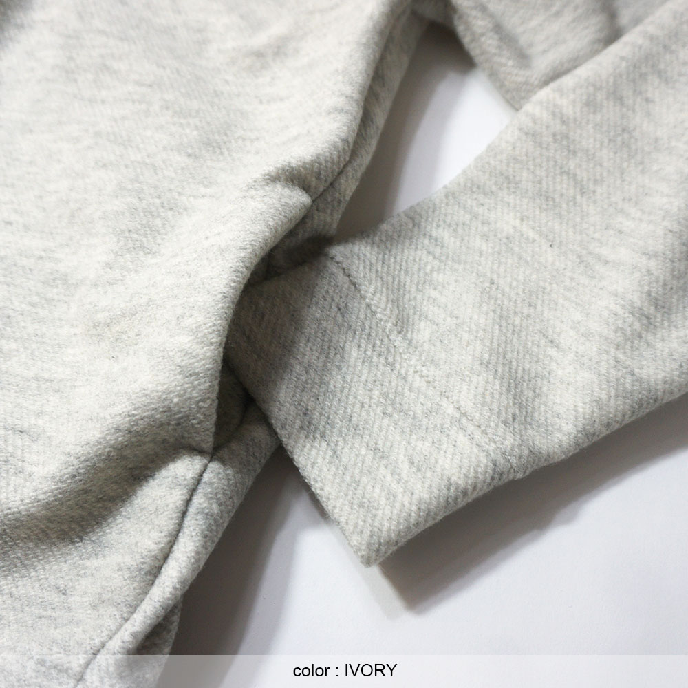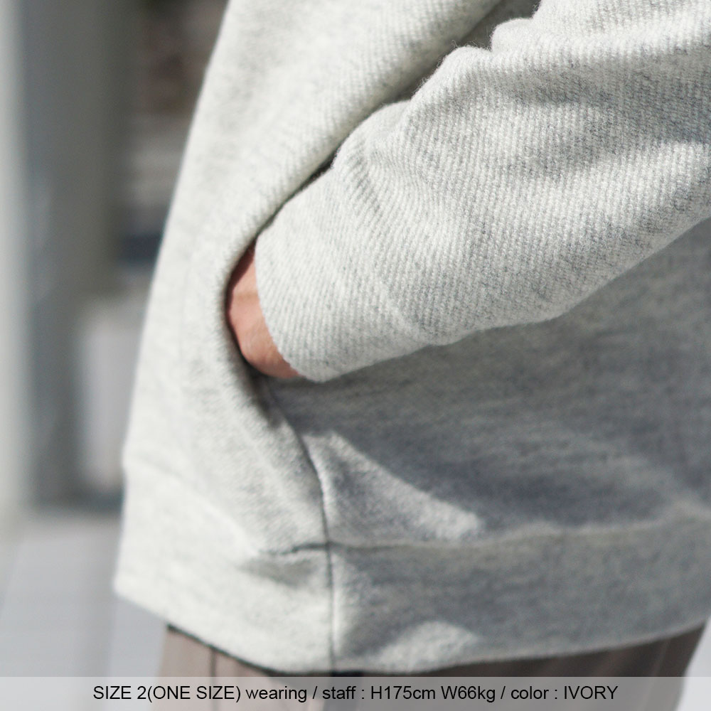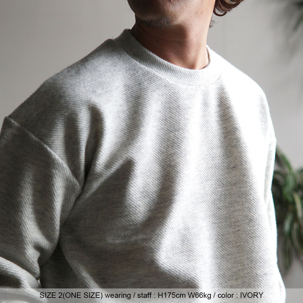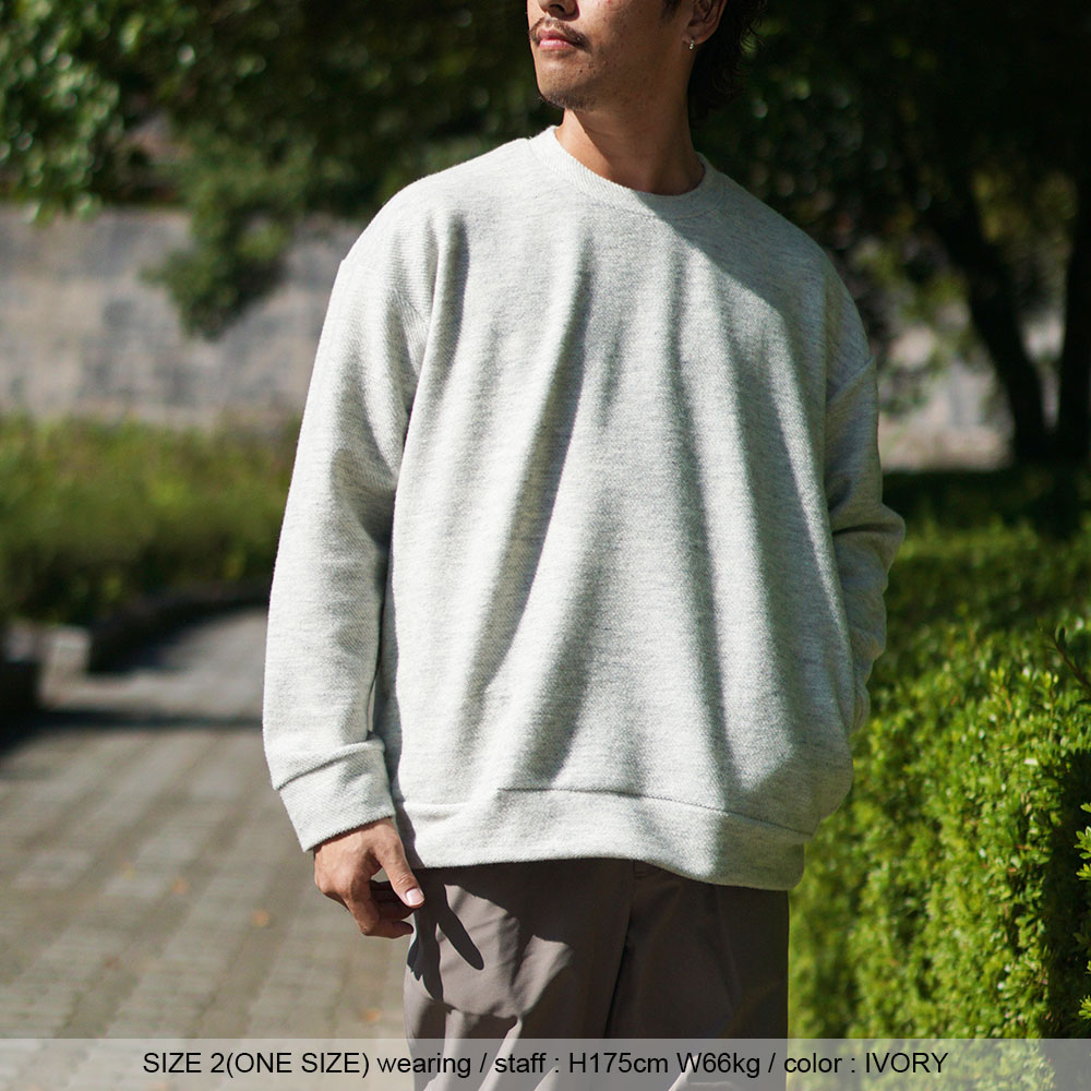 いわゆるスウェットよりも光沢感や毛羽があることで温かみある顔立ちですが、