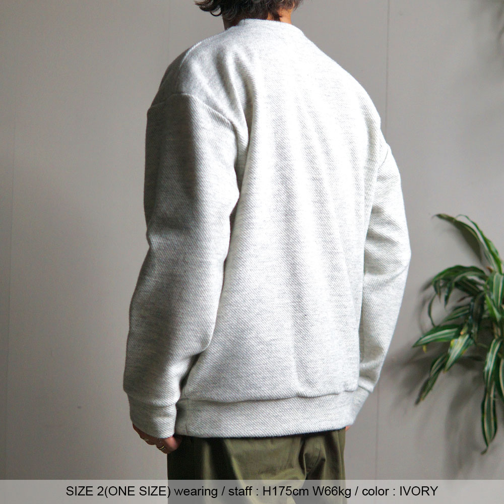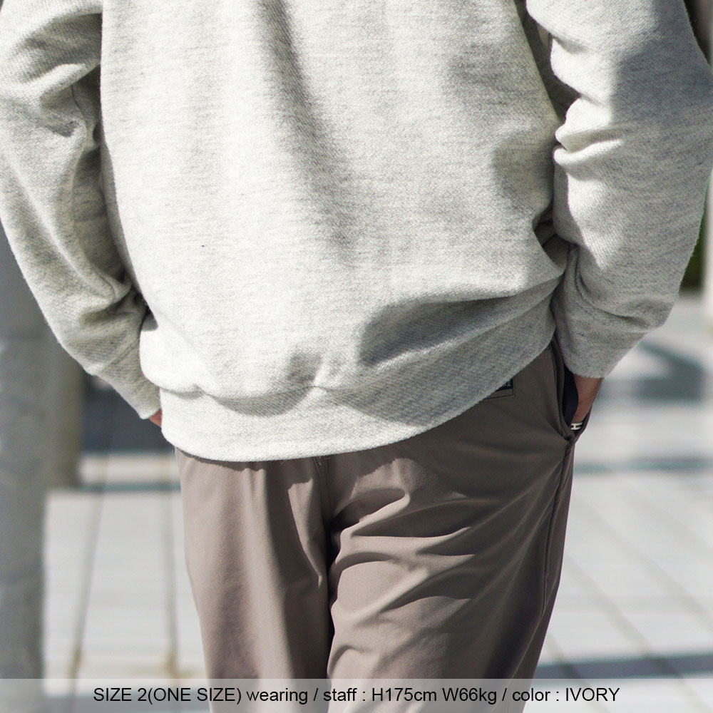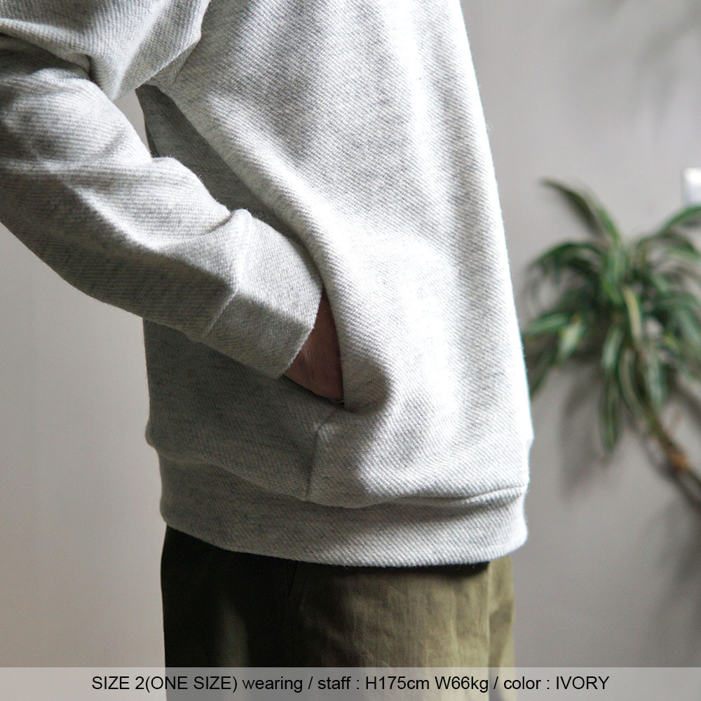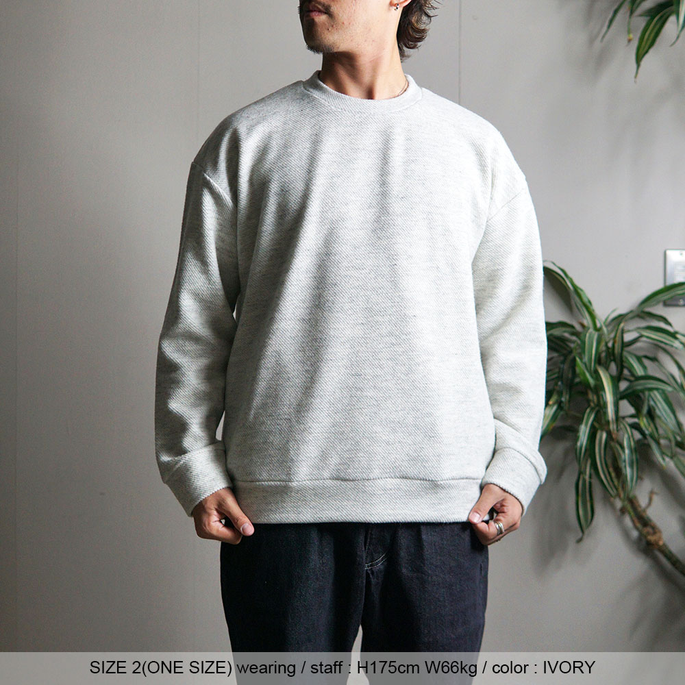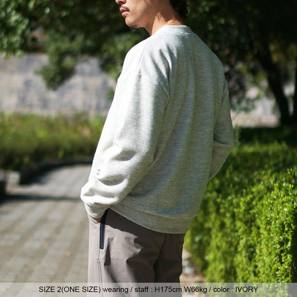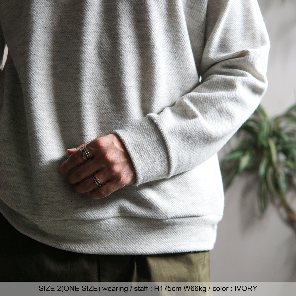 いわゆるスウェットよりも光沢感や毛羽があることで温かみある顔立ちですが、