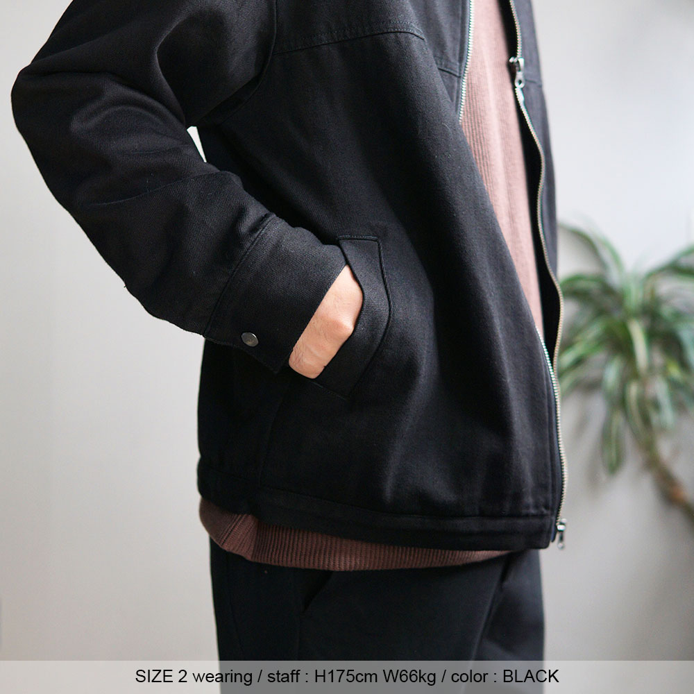 さらにこの生地を用い、 フロントをボタンではなくZIPブルゾンで表現することで真新しさがある新鮮味をプラス。