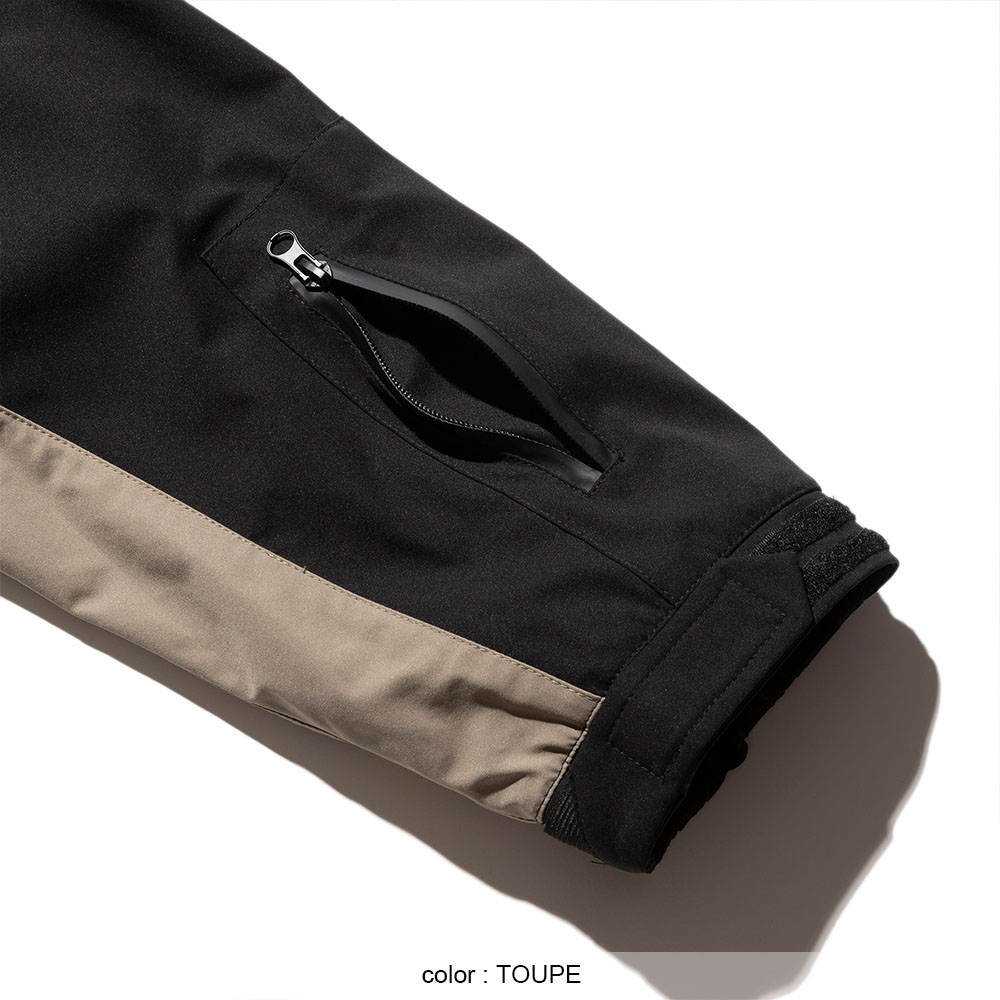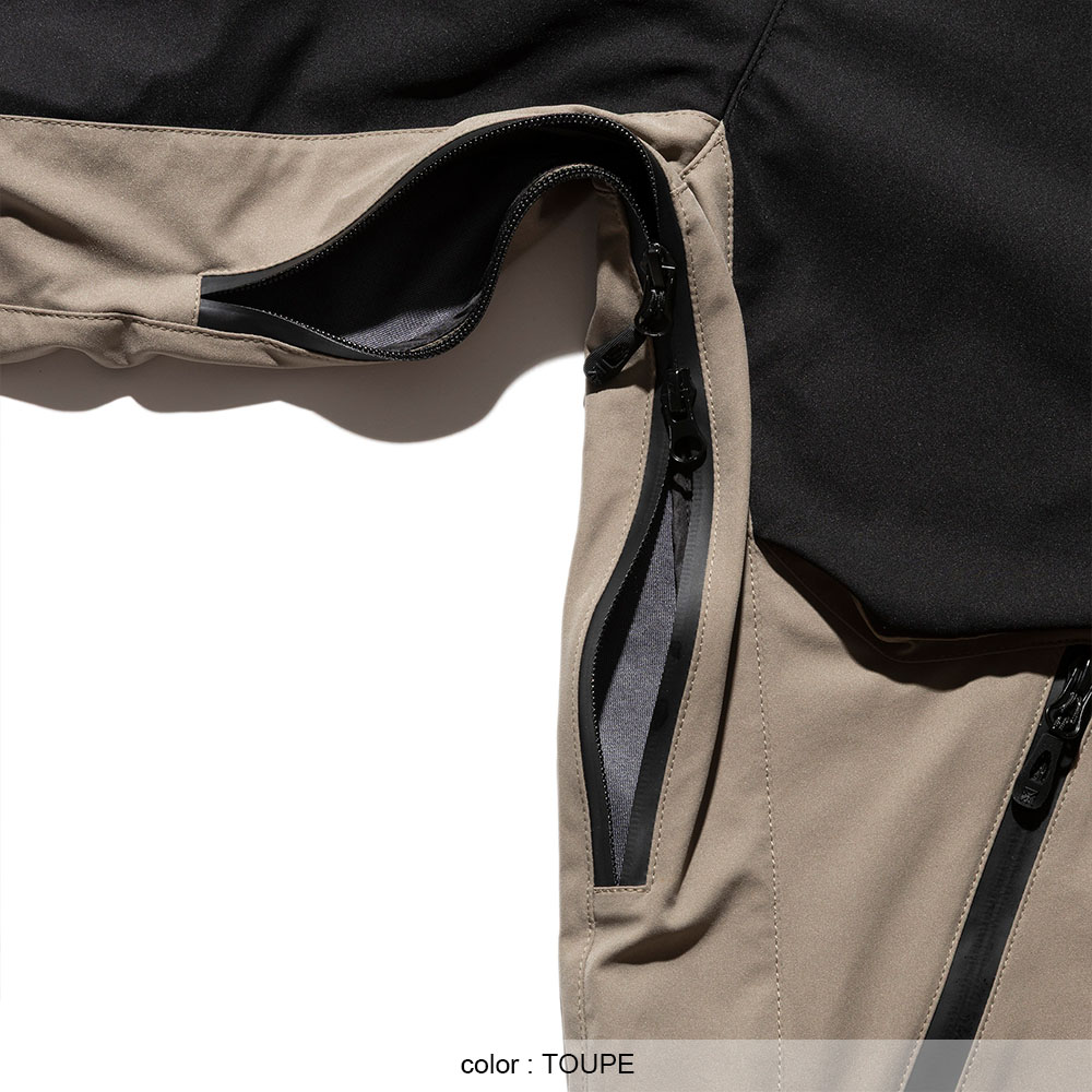 脇下にはベンチレーションジッパーを備え、 蒸れやすい場面でも体温調整を可能したディティールです。
