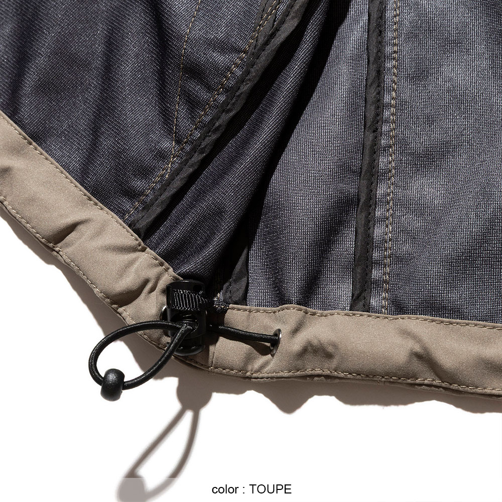 ドライな質感ながら透湿・速乾・耐摩耗・ストレッチ・撥水・耐久性を併せ持つ、 "ROAMFREE"を採用した雨風に強く蒸れも逃す高機能アウトドアシェルを採用。