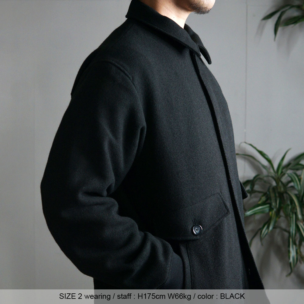 程よく肩が落ち身幅もやや広めに仕立てたアウターフィッティングで、