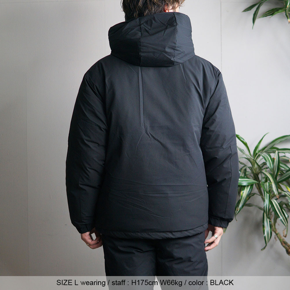 フードも立ち上がりが良く、防風性とバランスの良いシルエットを両立。