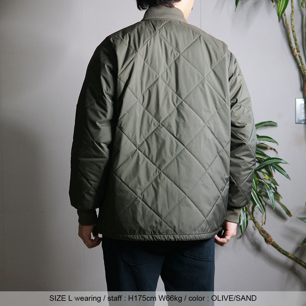 裏面にはサンドベージュの柔らかな質感と、 中綿がふっくらとした立体感が加わり、 ヴィンテージミリタリーを思わせるムードを漂わせます。