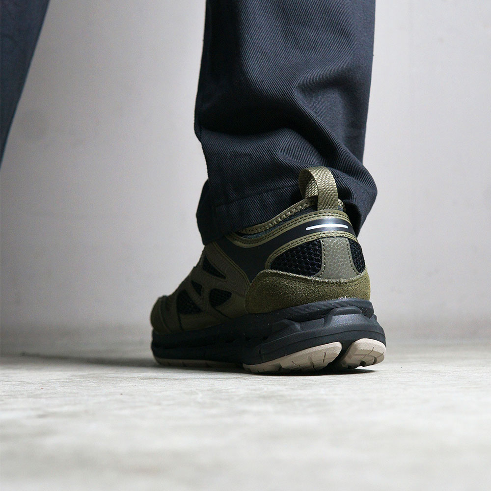 パーツに牛革を使用することで、 チープさを微塵も感じない素材の質感も楽しめる一足になっています。