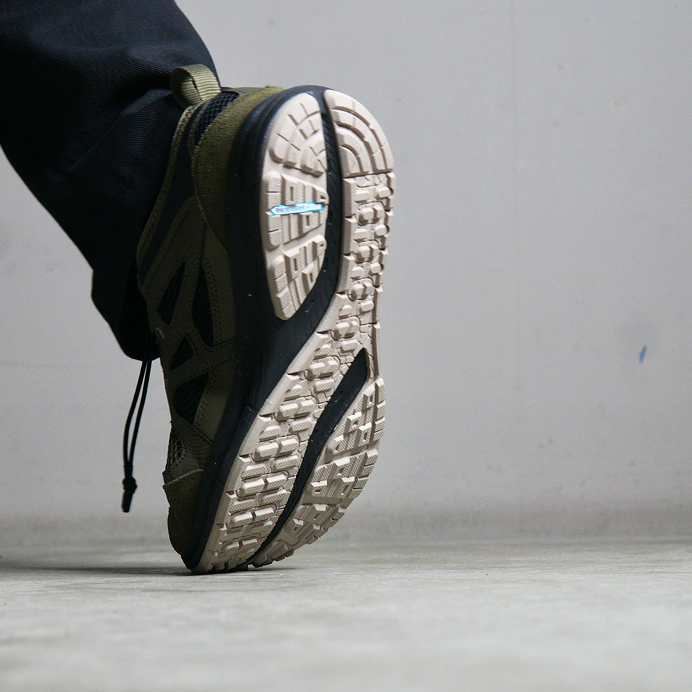 ミッドソールには、競技用ランニングシューズにも採用される超臨界EVA素材を使用した「ソニックフォーム」機能を搭載し、多少の悪路でも快適な歩行を実現。