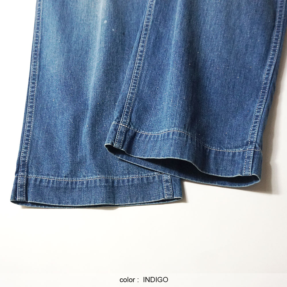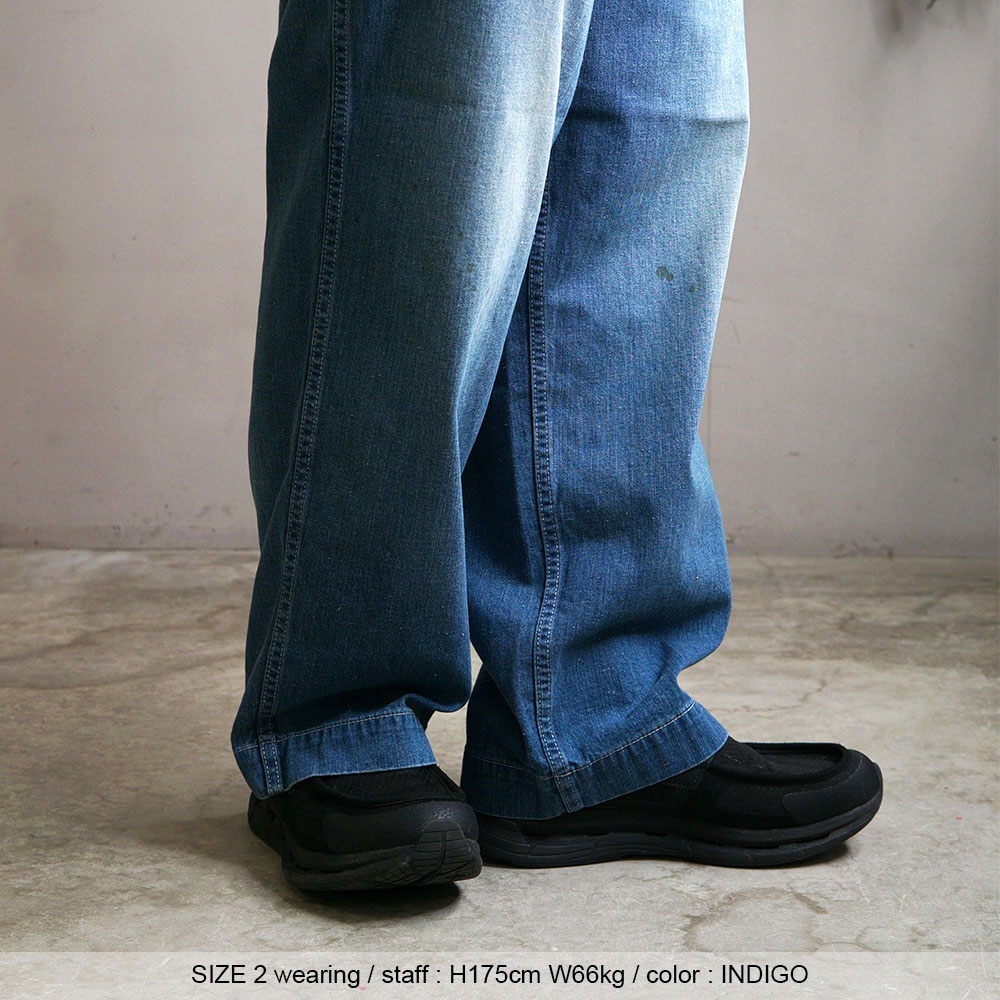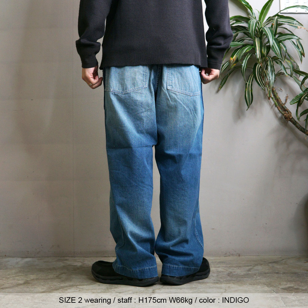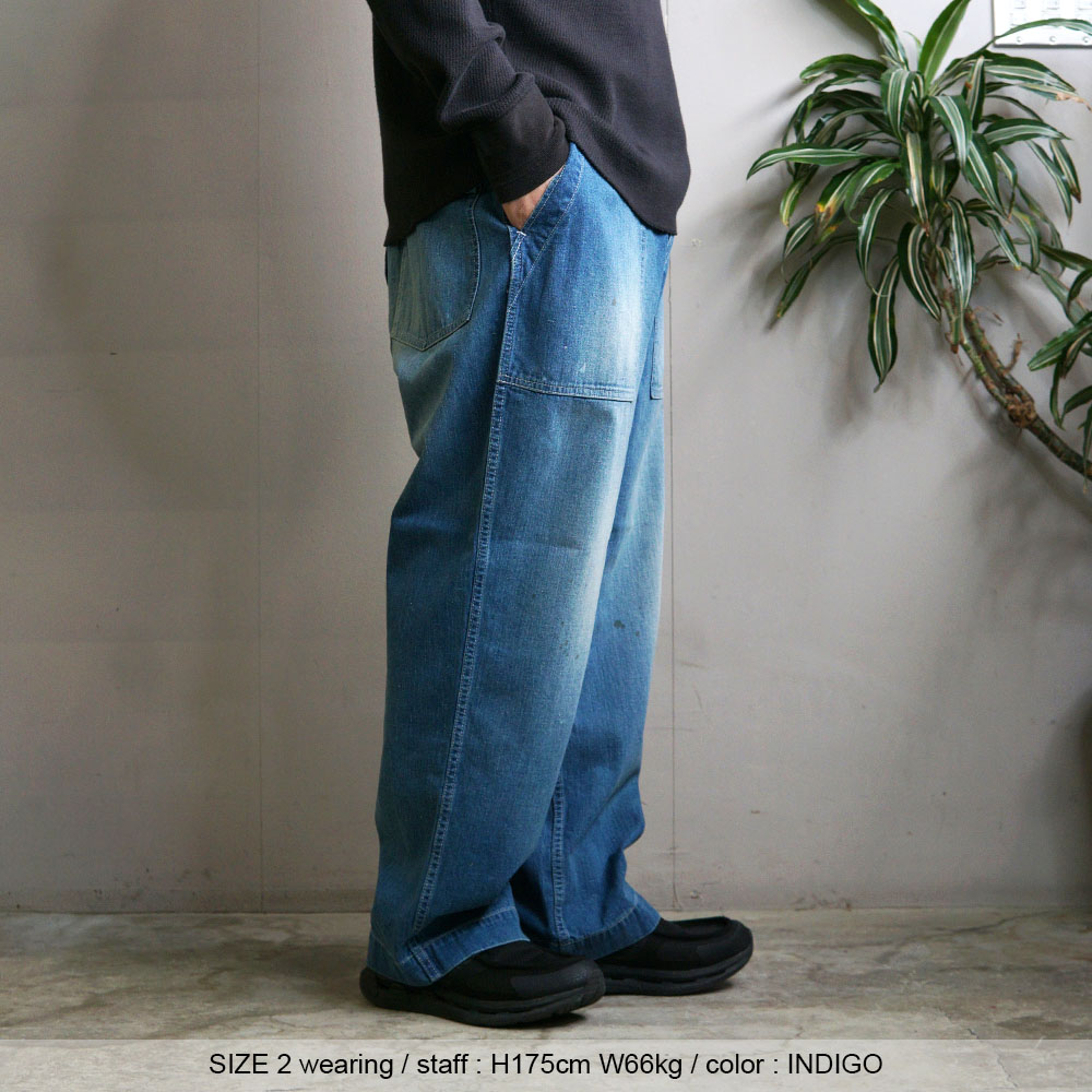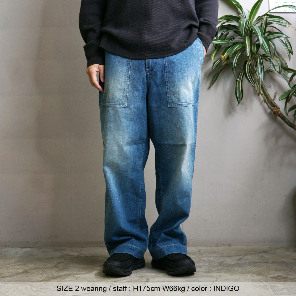鮮やかなウォッシュデニムでミリタリーファティグーを再現した新型パンツ。
