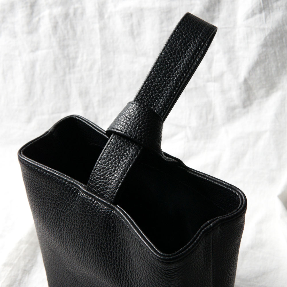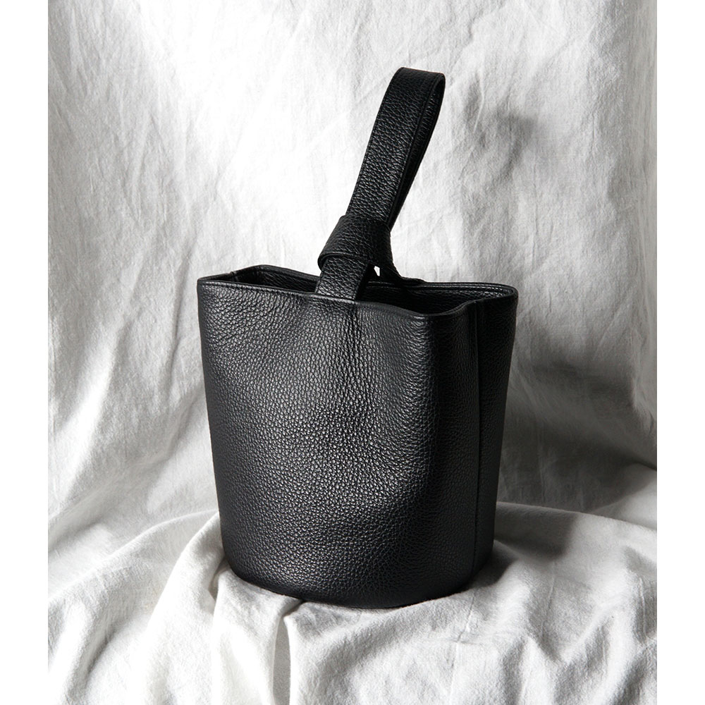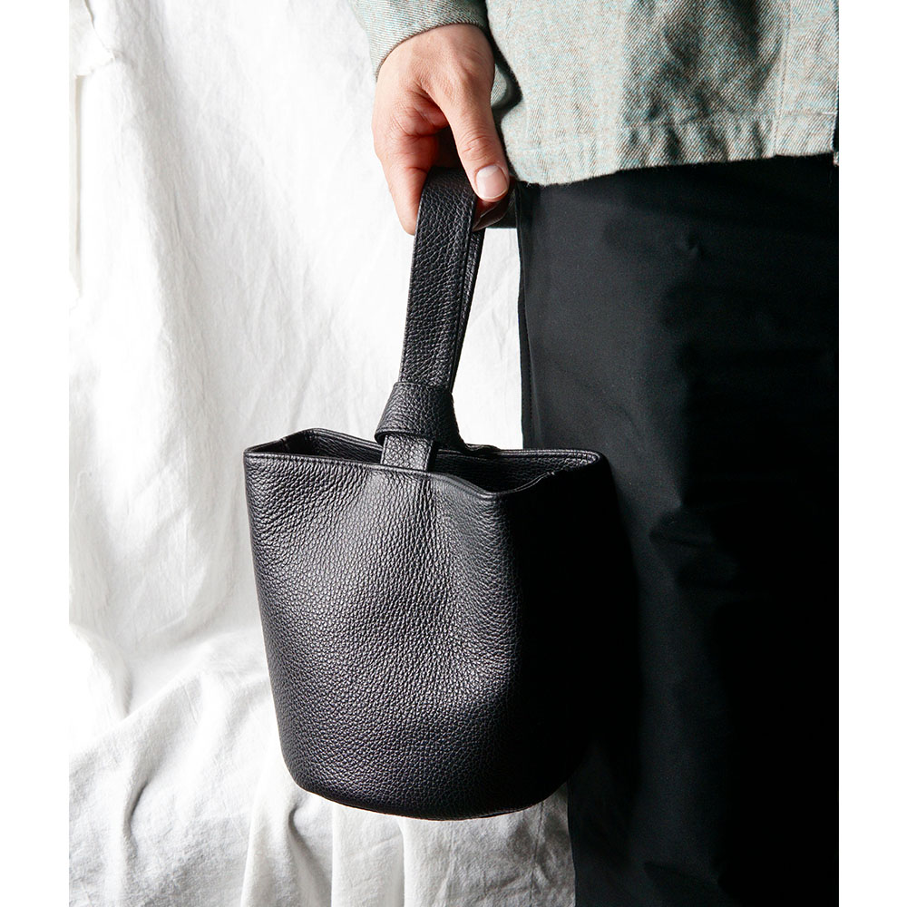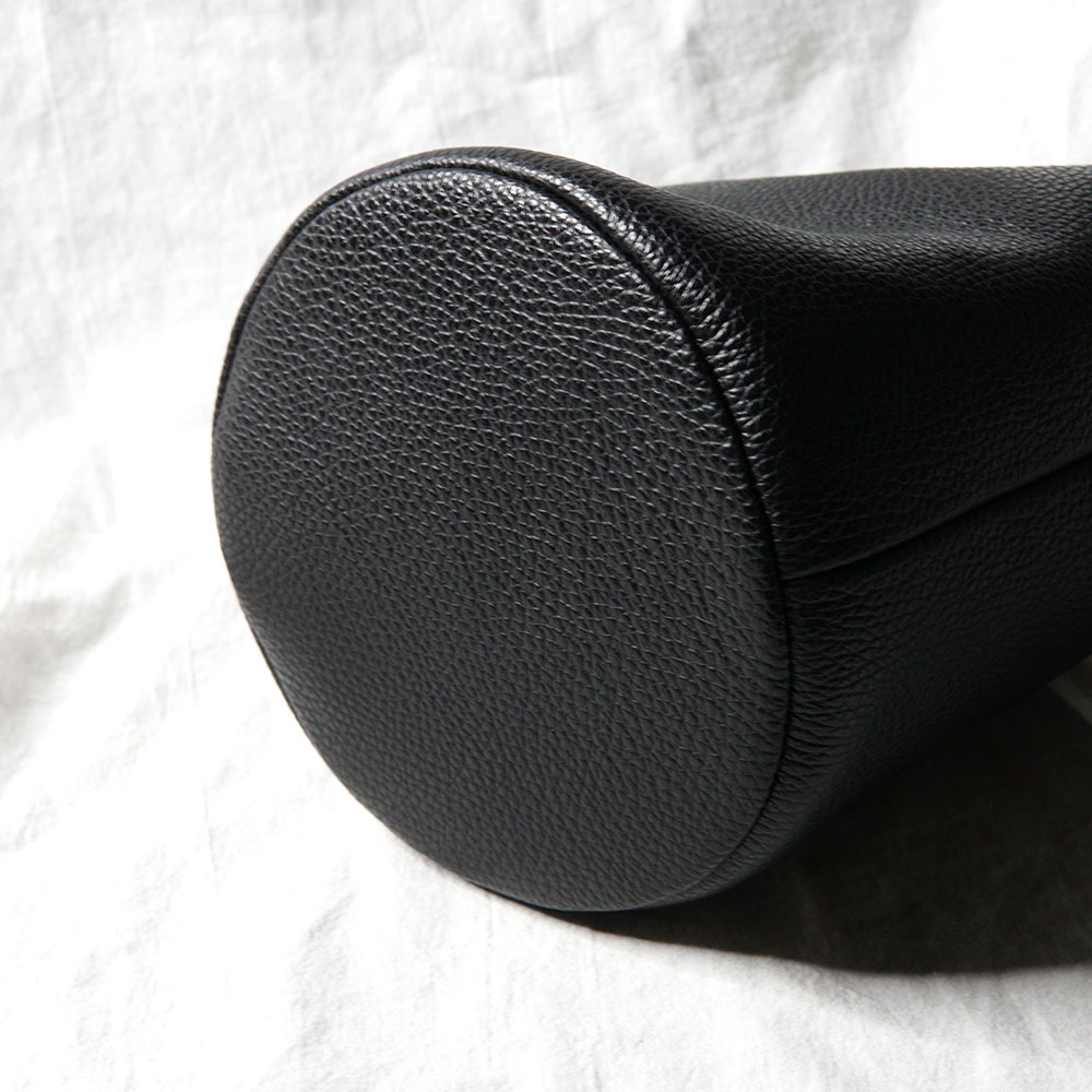 ユニセックスで使えるマルチで小ぶりな円柱のレザーワンハンドルバッグは、