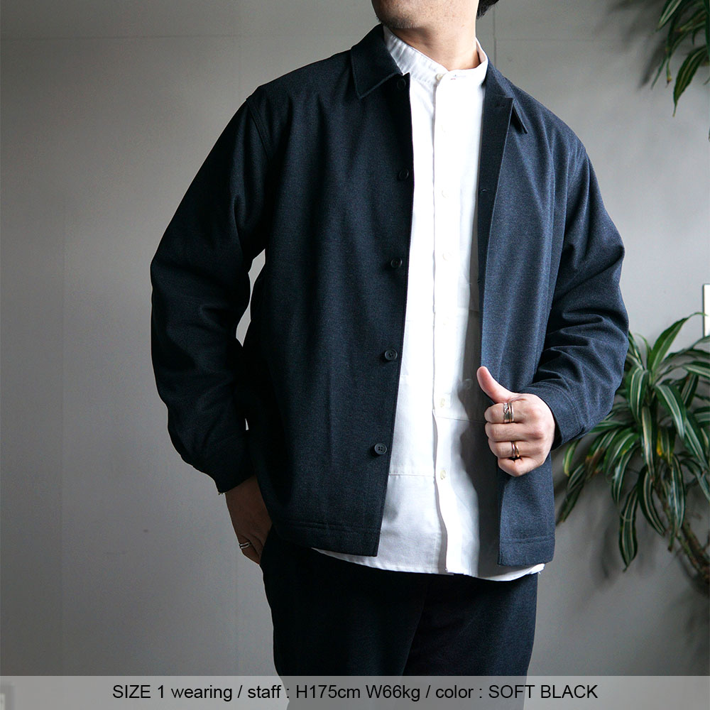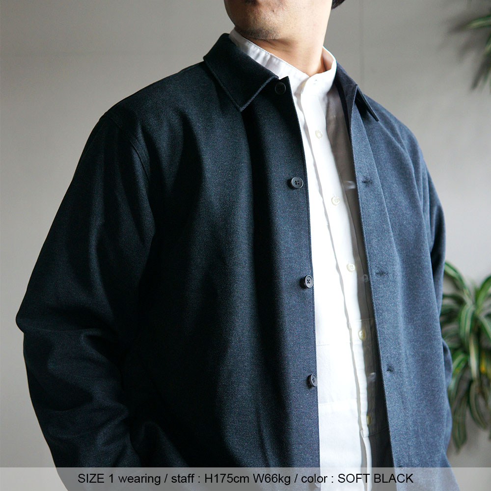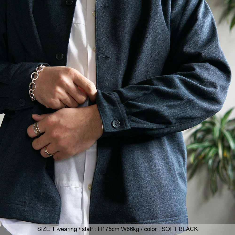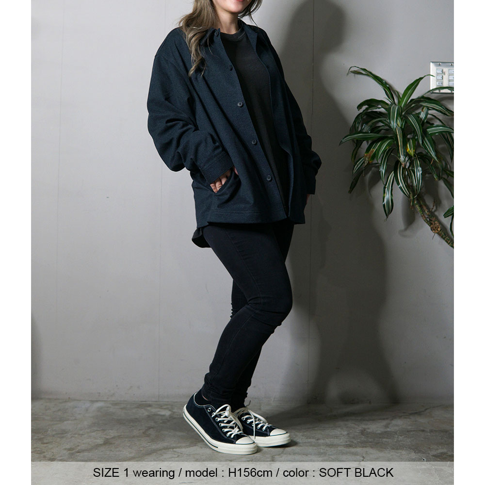 ・サイズ1・・・肩が自然に落ちるリラックスシルエットでありながら、全体のバランスはすっきりまとまるちょうど良い余裕感です。身幅には程よいゆとりがあり、インナーを重ねても窮屈さがなく、それでいて着膨れして見えにくい設計で、車の運転や日常動作にも干渉しにくく、シャツ感覚で気軽に使えるサイズ感。 メンズの推奨身長165~180m迄の方で、よりすっきりと着こなしを楽しみたい方におすすめです。