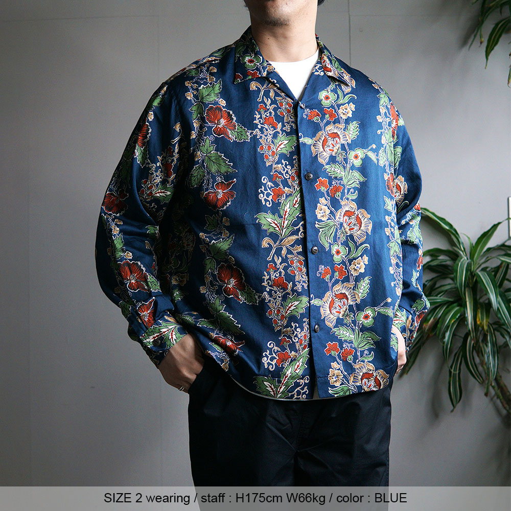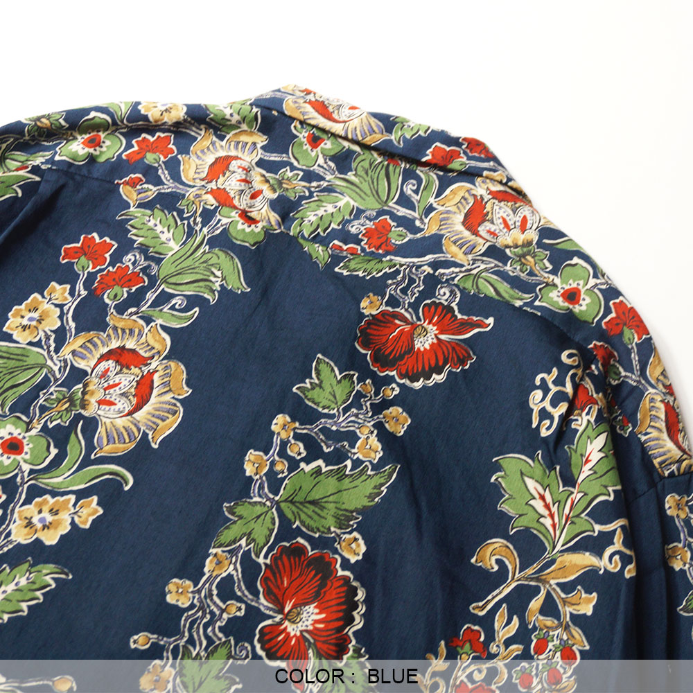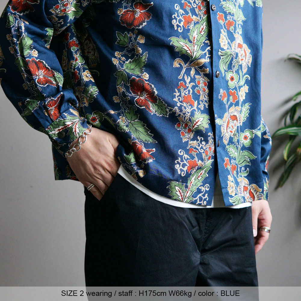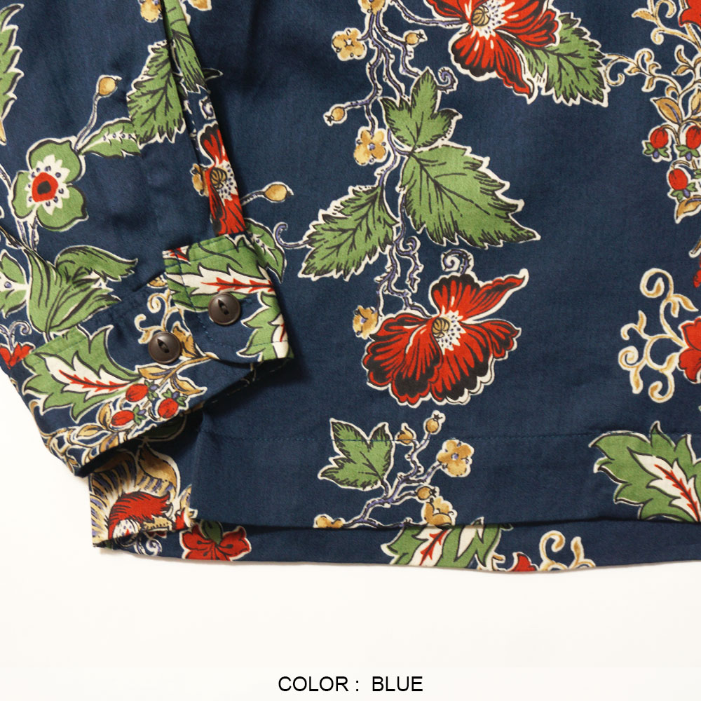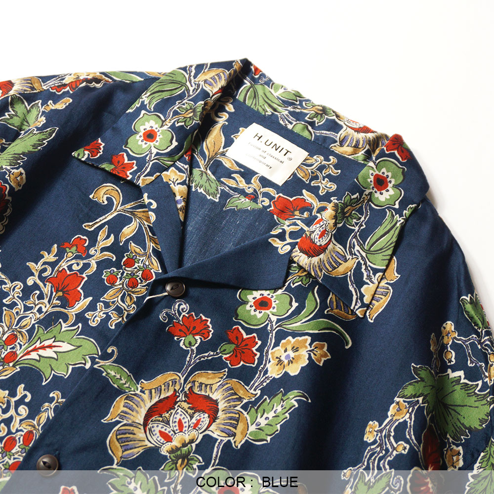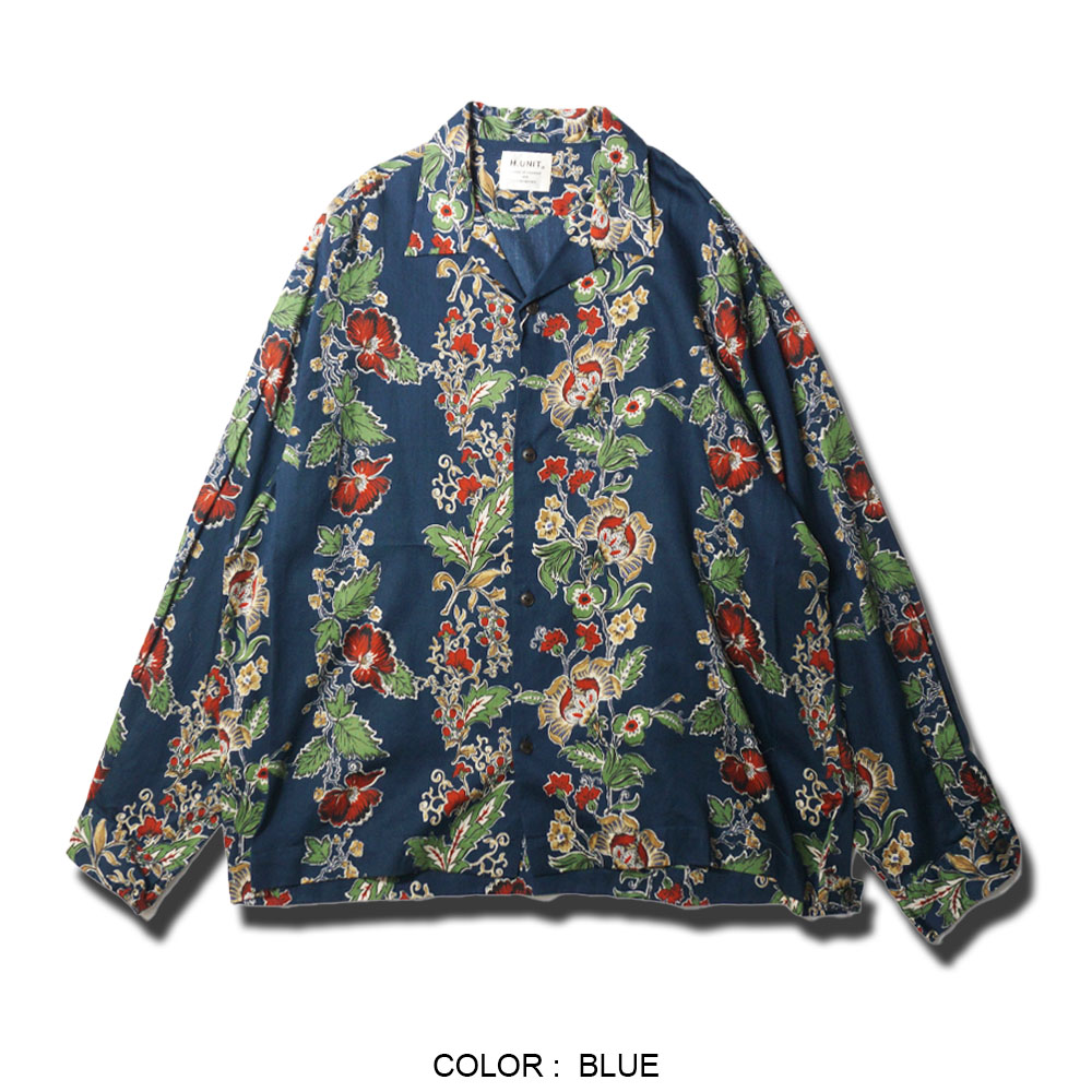 H.UNIT / Flower Print Open Collar Long Sleeve Shirts / BLUE / H-SH066