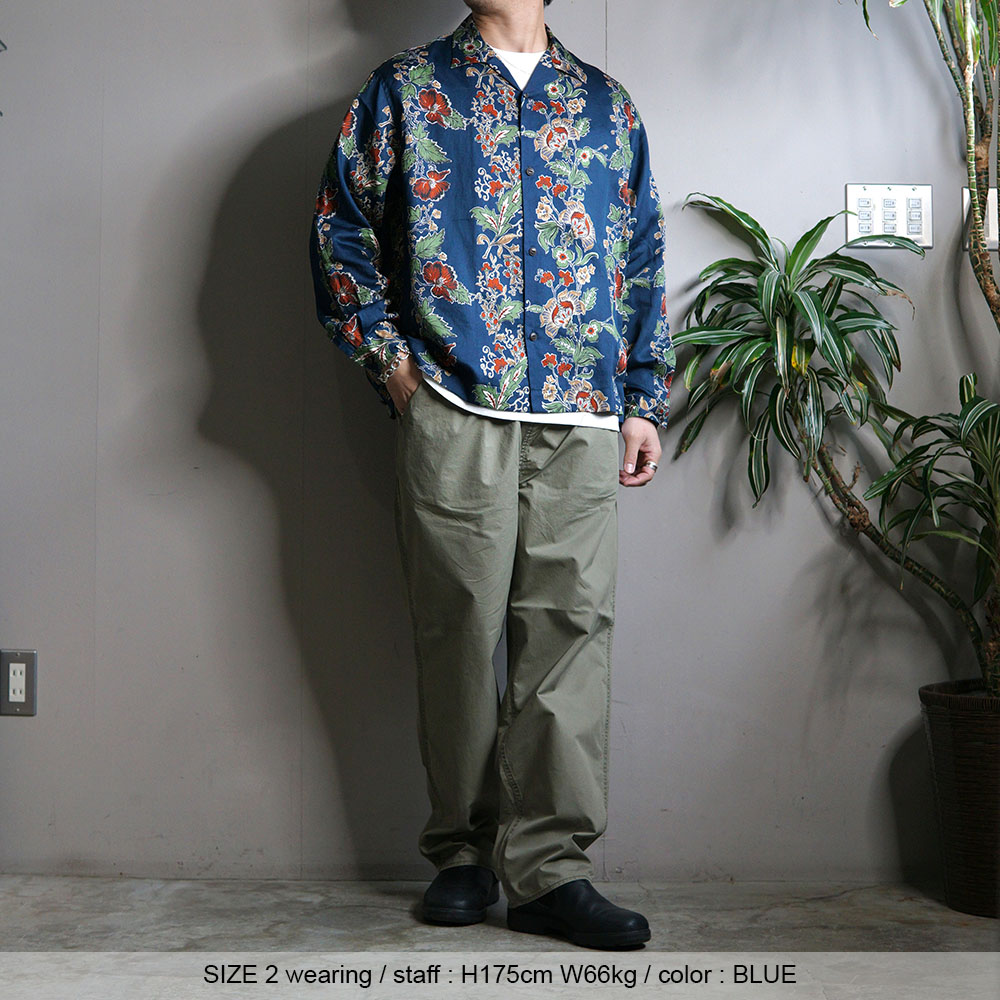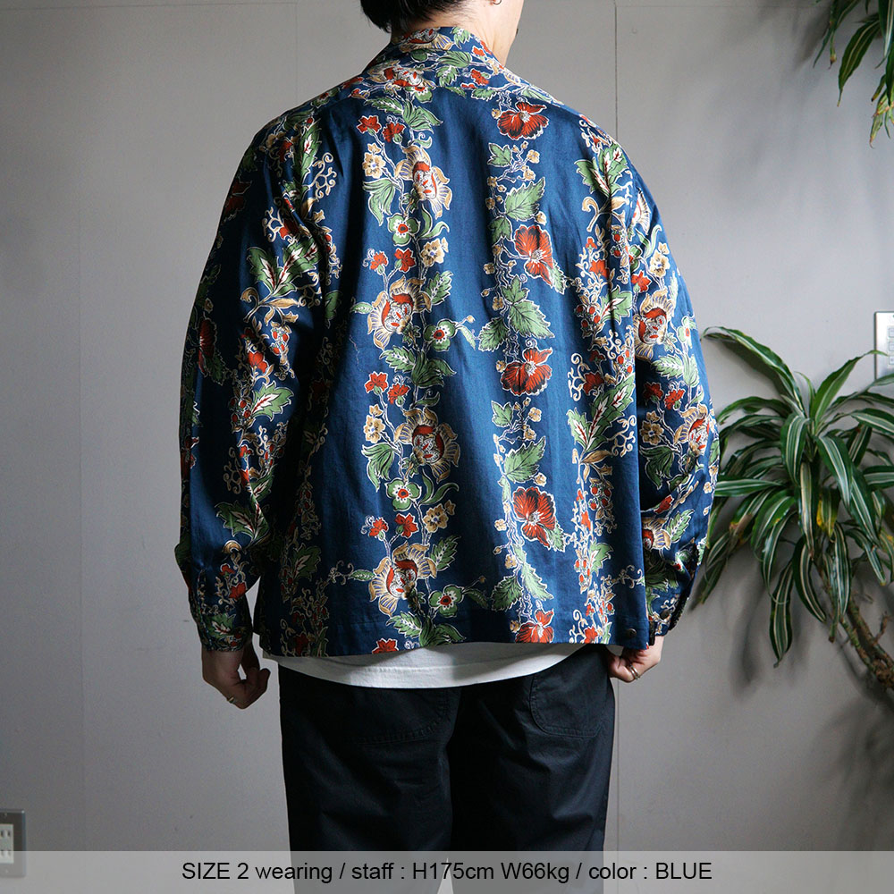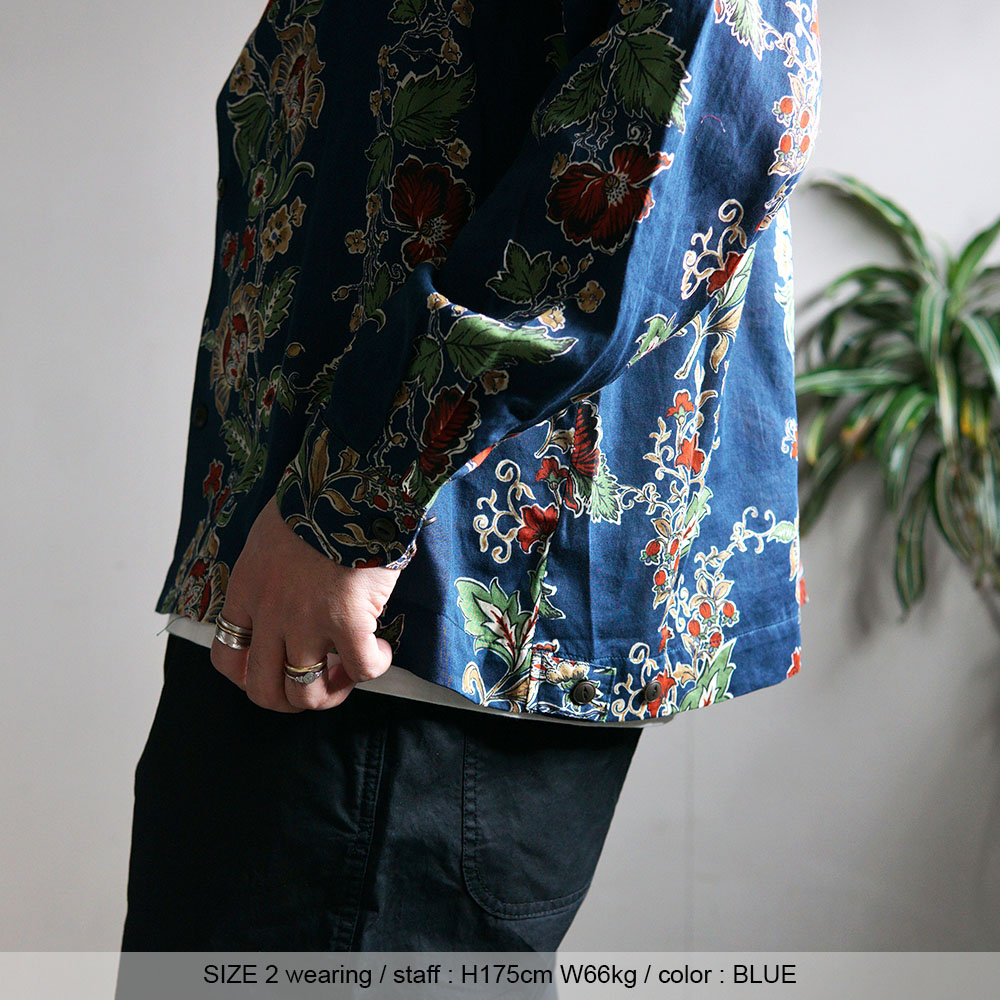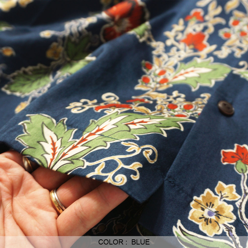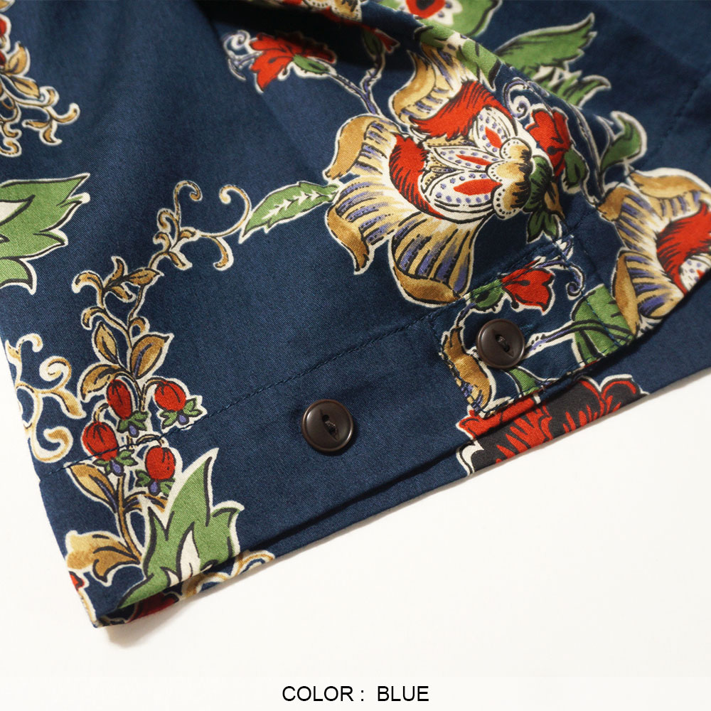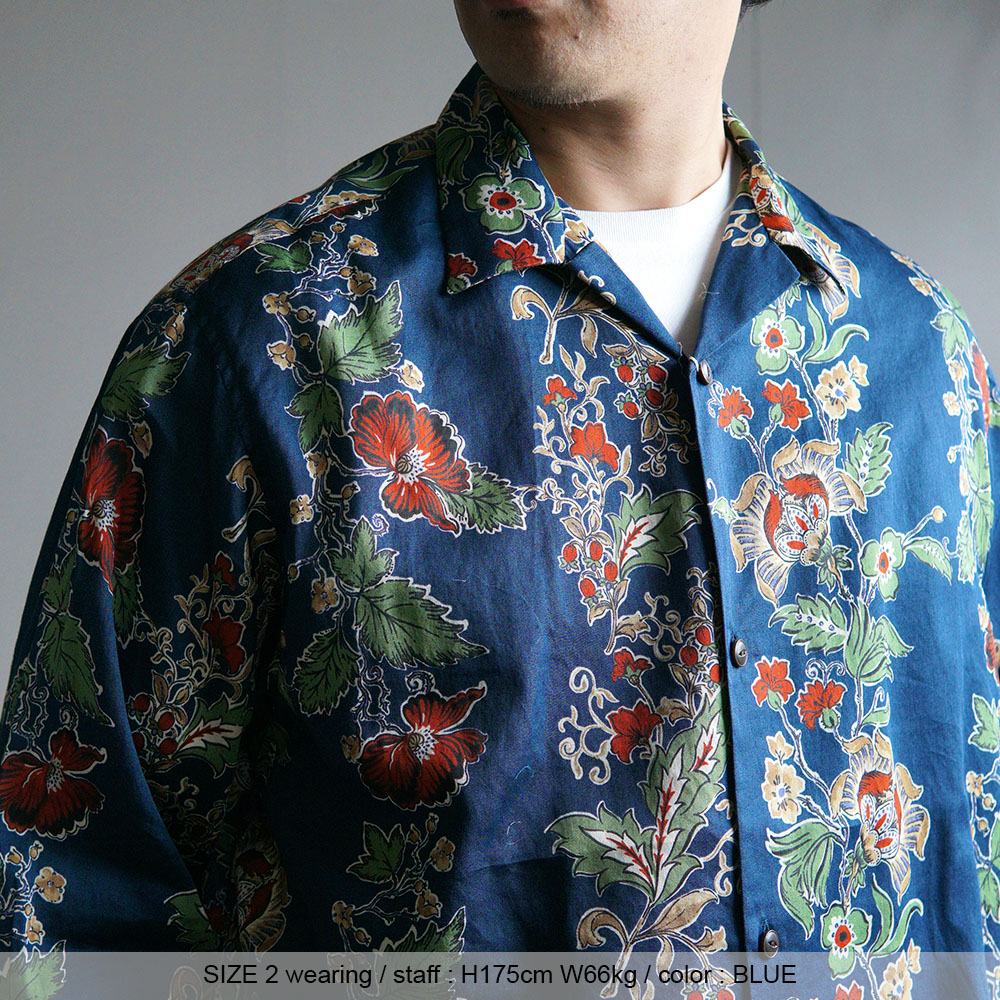 H.UNIT / Flower Print Open Collar Long Sleeve Shirts / BLUE / H-SH066