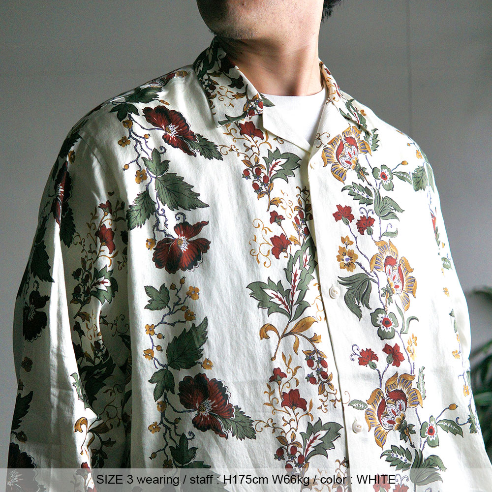 しなやかな生地に落とし込んだH.UNITらしい空気感の"Flower Print Open Collar Long Sleeve Shirts"が到着です。