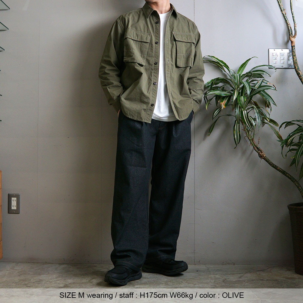 軽さと程よいハリ感がありシャツとしてはもちろん、 季節の変わり目にはライトアウター感覚でも活躍してくれます。