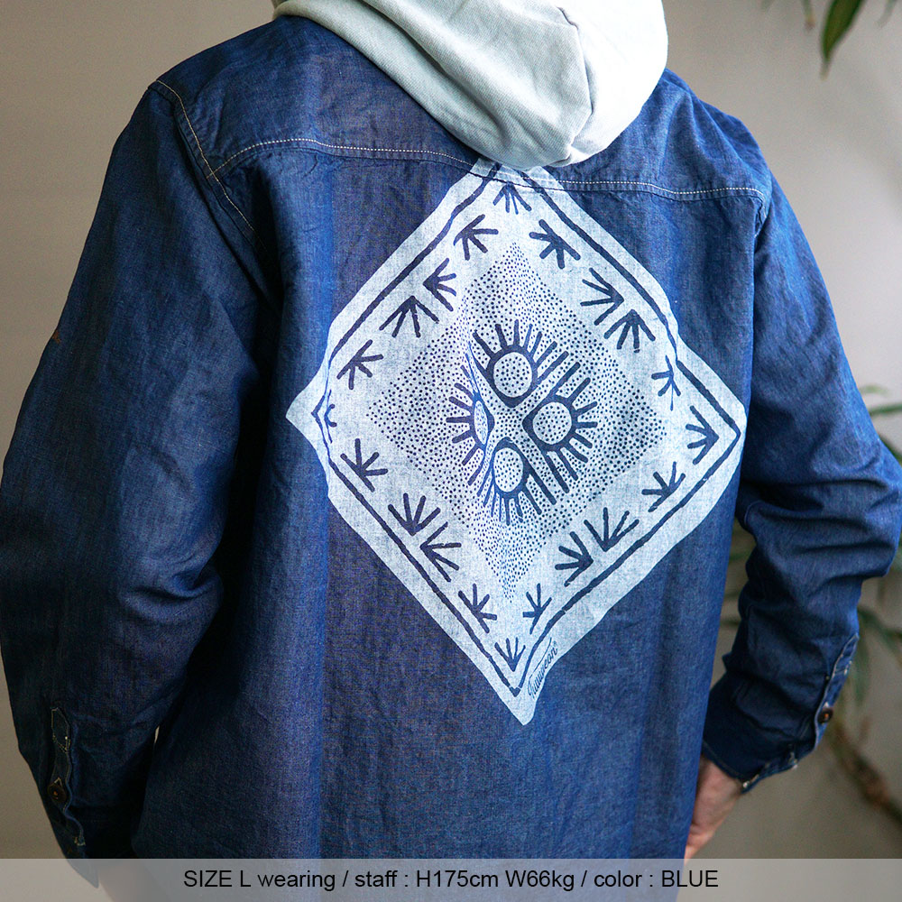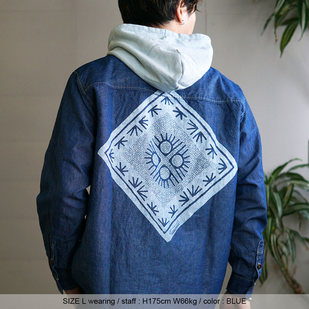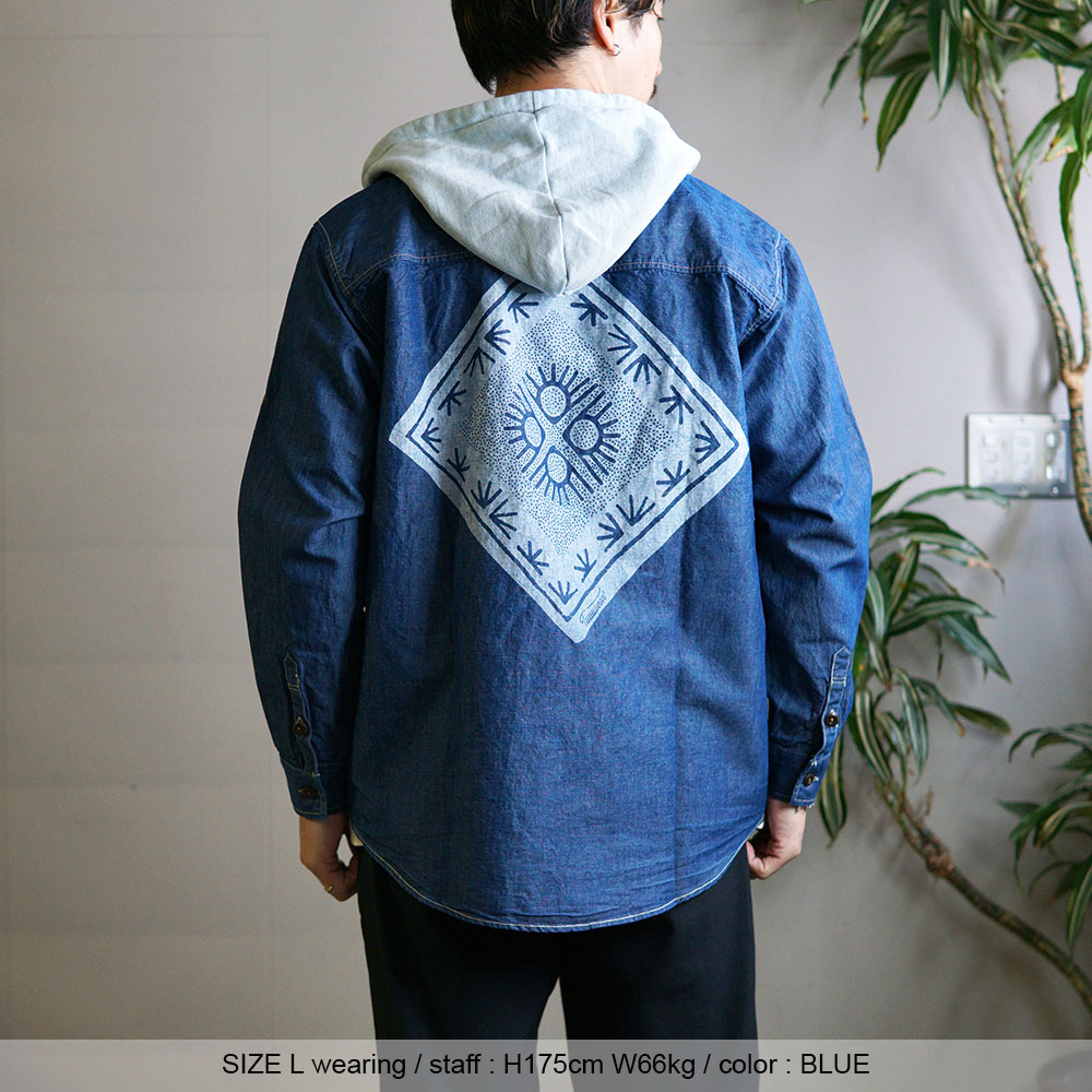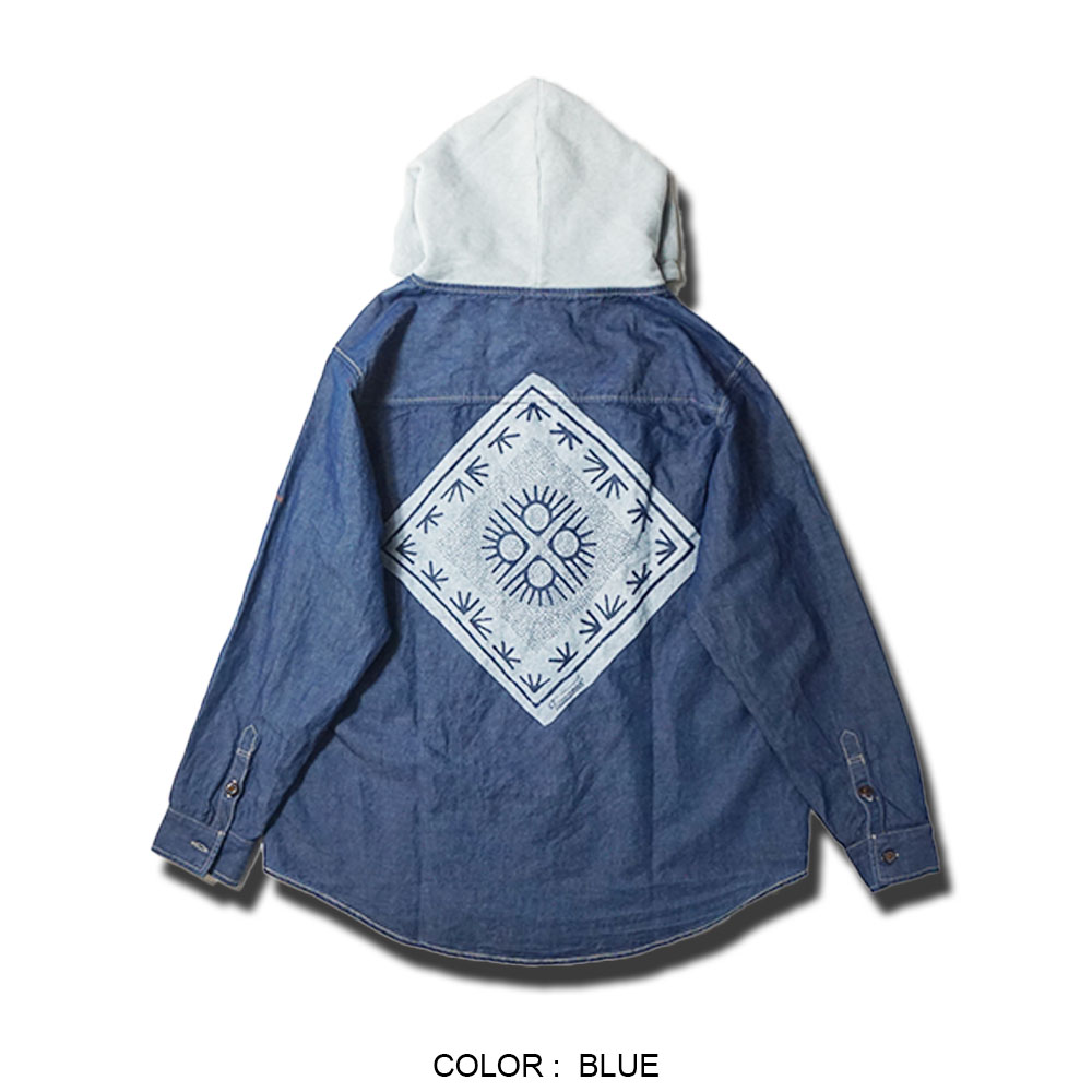 シャツ×フーディの中間 ネイティブデザインが目を引く大人のシャンブレーシャツ。