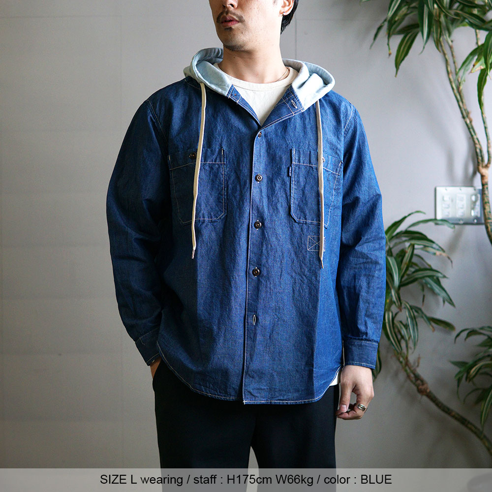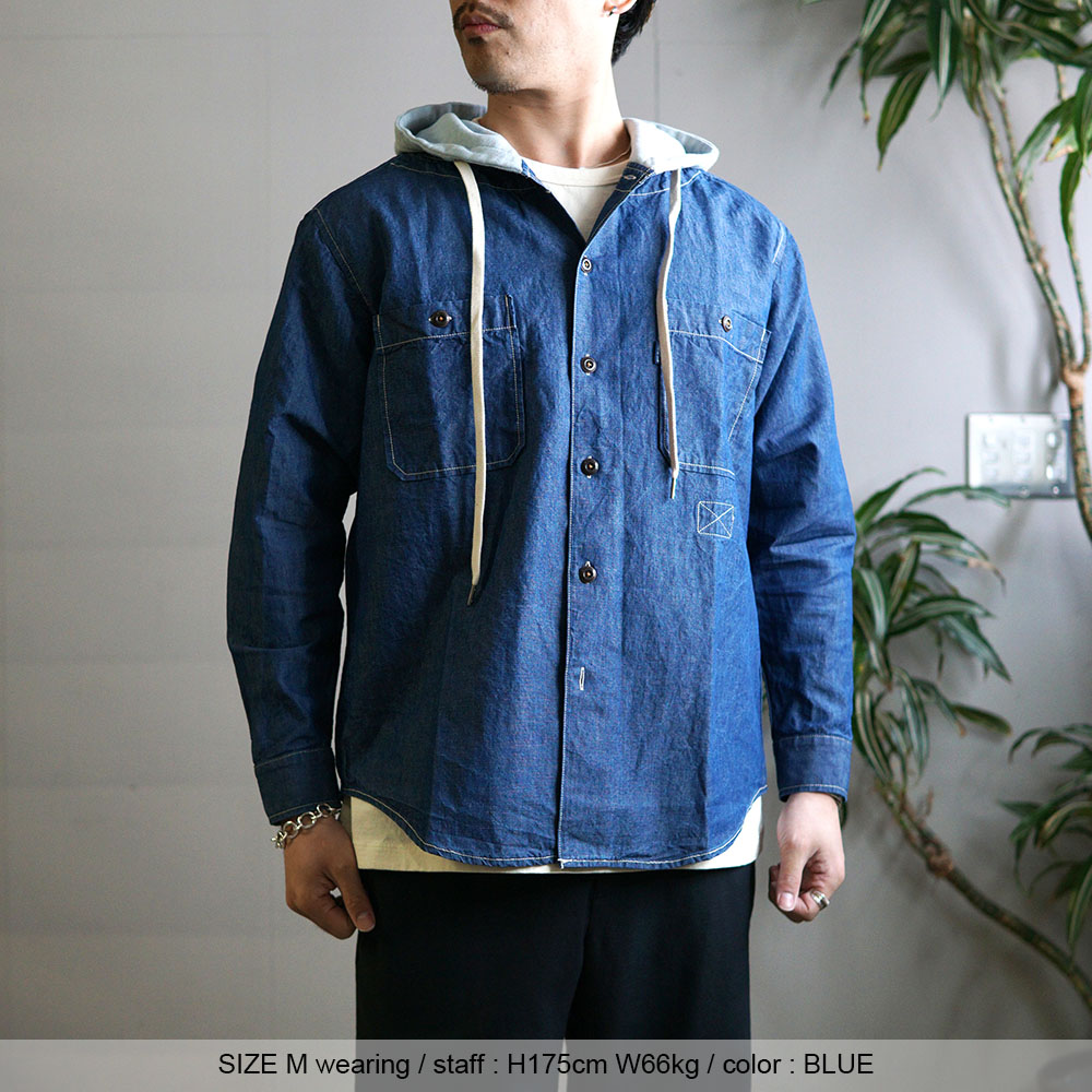 スウェットフーディのリラックス感を一つに落とし込んだ“スウェットフード付ワークシャツ”のご紹介です。