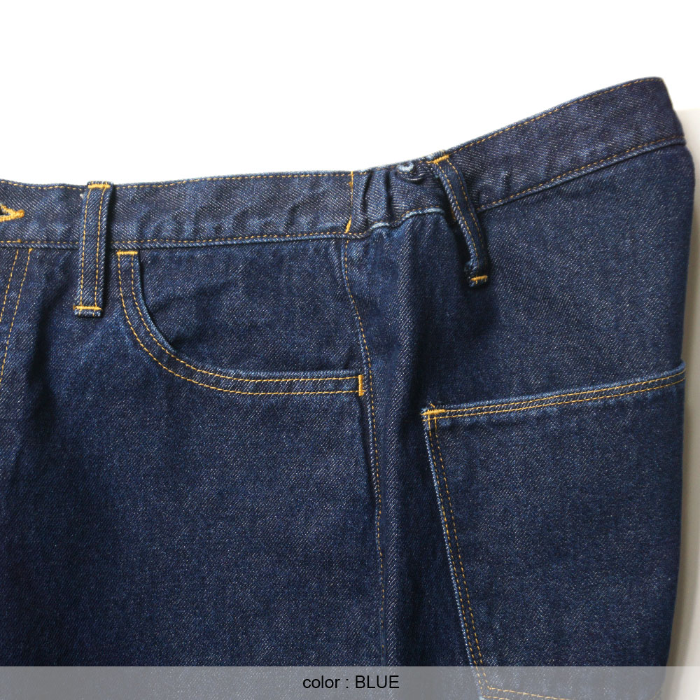 ウエストには腰裏にのみゴムを通すことで、 デニムらしい堅実なルックスは残しながら動きに順応するフィッティングを実現。