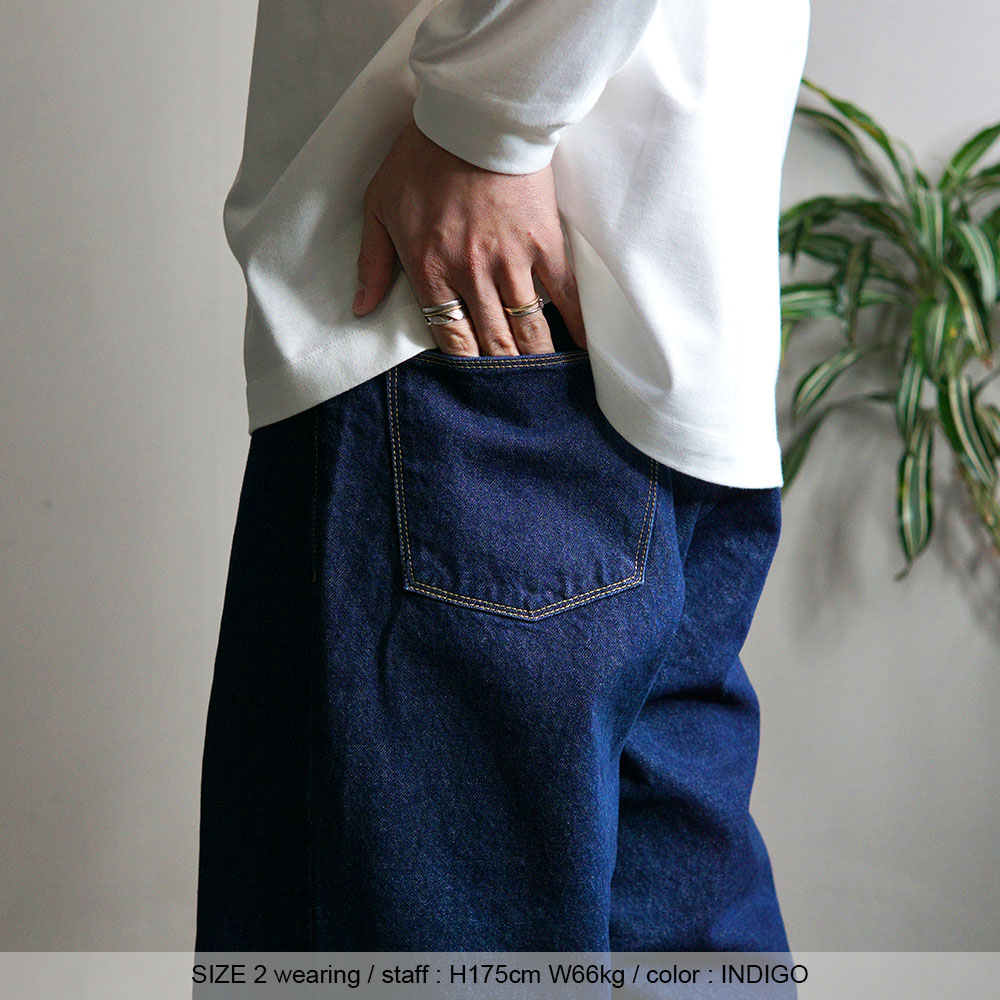 さらに生地には、 張りすぎないソフトタッチの岡山県産12オンスデニムを使用し、 春夏らしく重みを感じさせない軽快な穿き心地に。