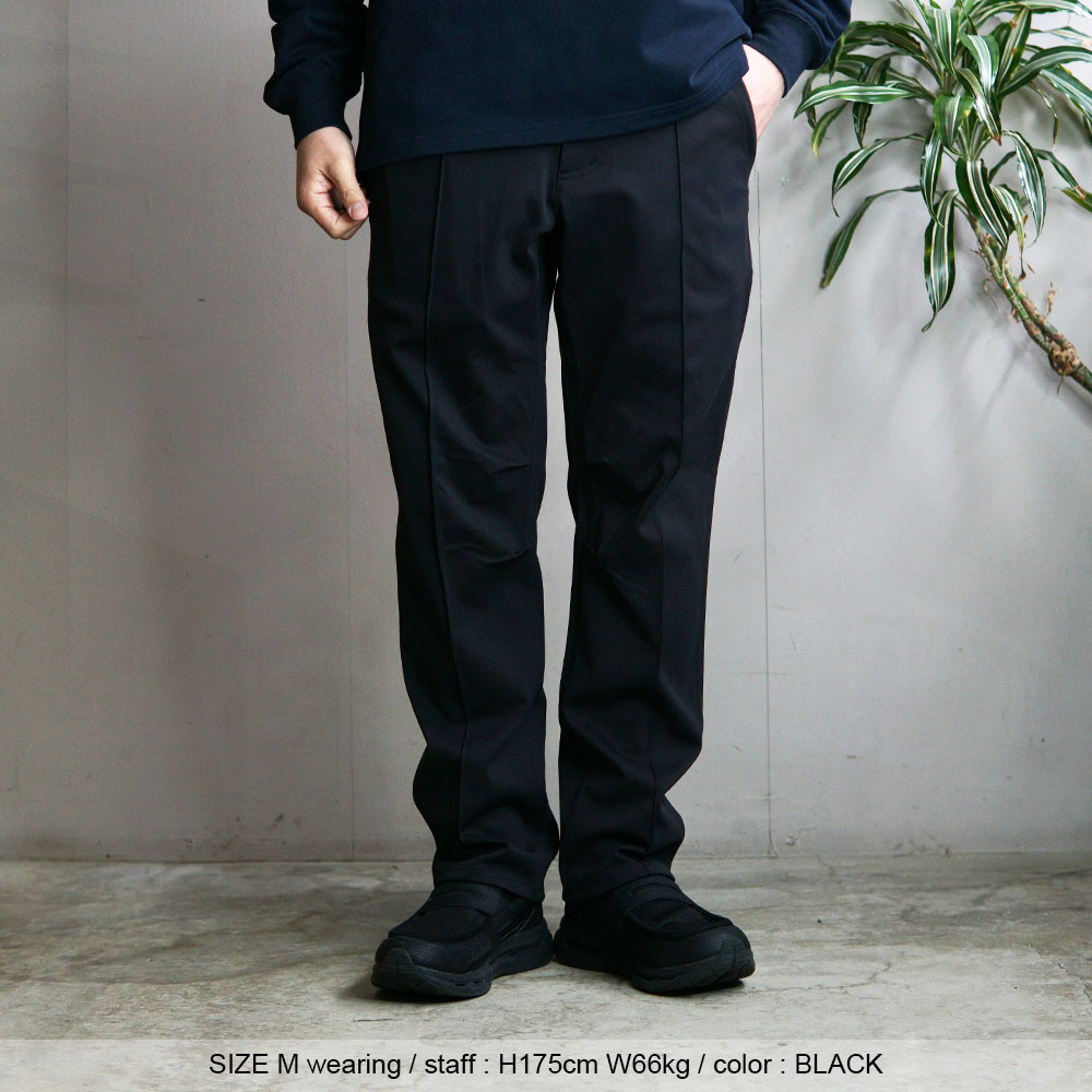 まるでスウェットパンツのようなイージーさがありつつも、 センタークリーツは縫い付けてあるためアイロン要らずで、 美しいシルエットが相まってスラックスライクなビジュアルで完成されています。