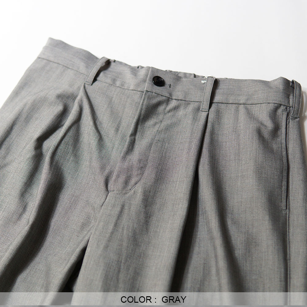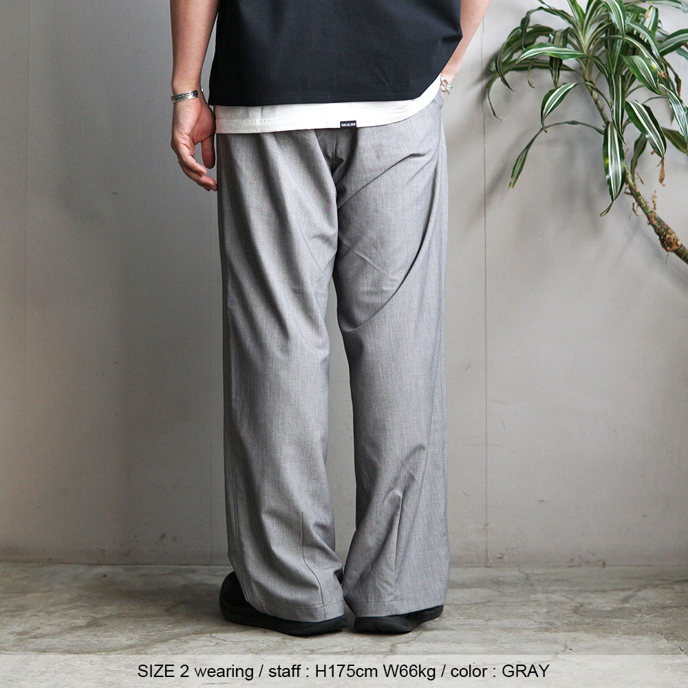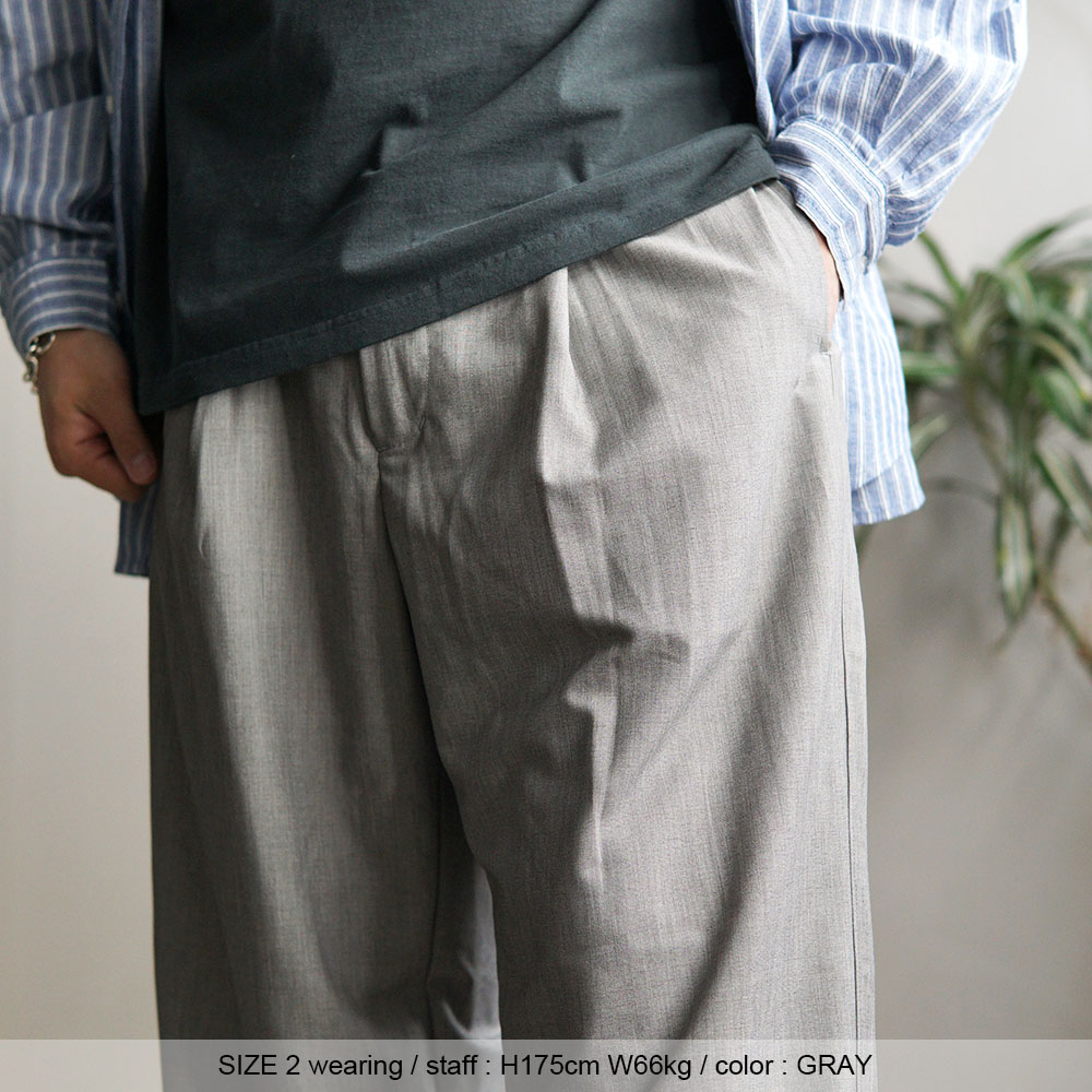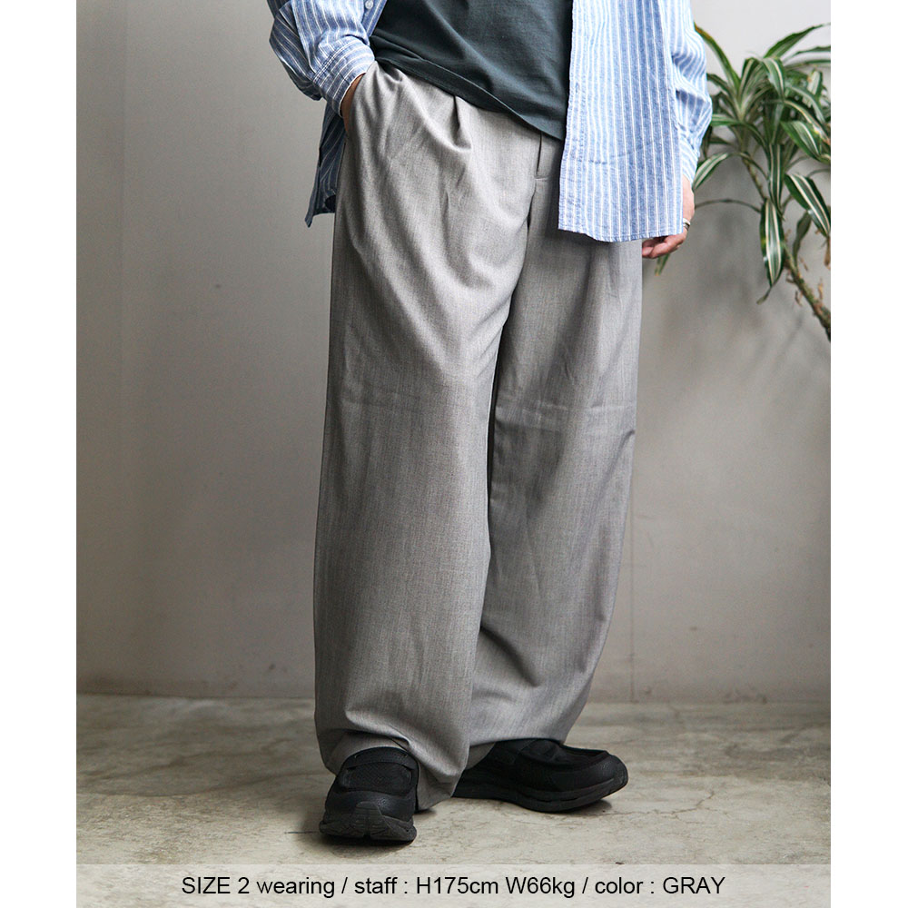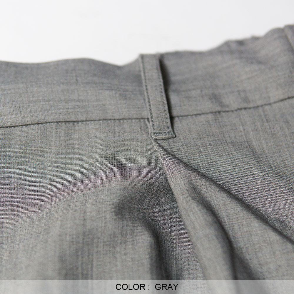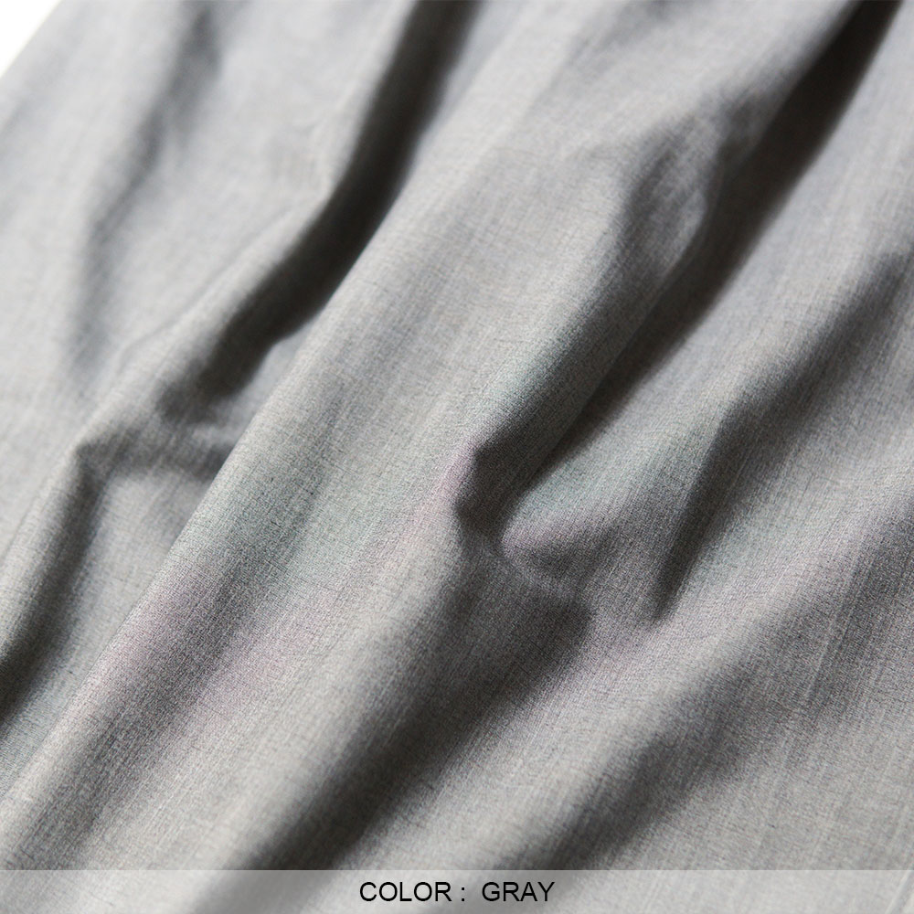 この贅沢素材を用い、腰回りにタックを入れることで自然なゆとりを持たせ、 シルエットは裾にかけて緩やかにカーブを描く立体的なシルエットで構成。