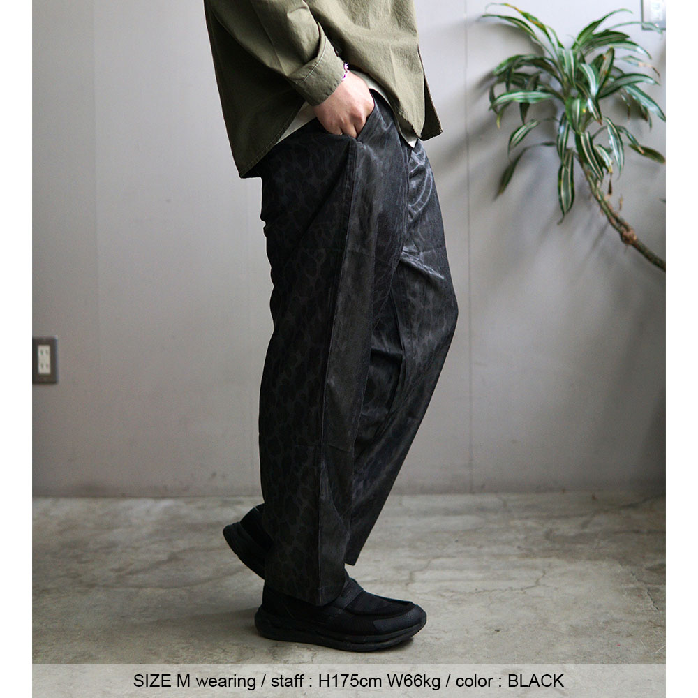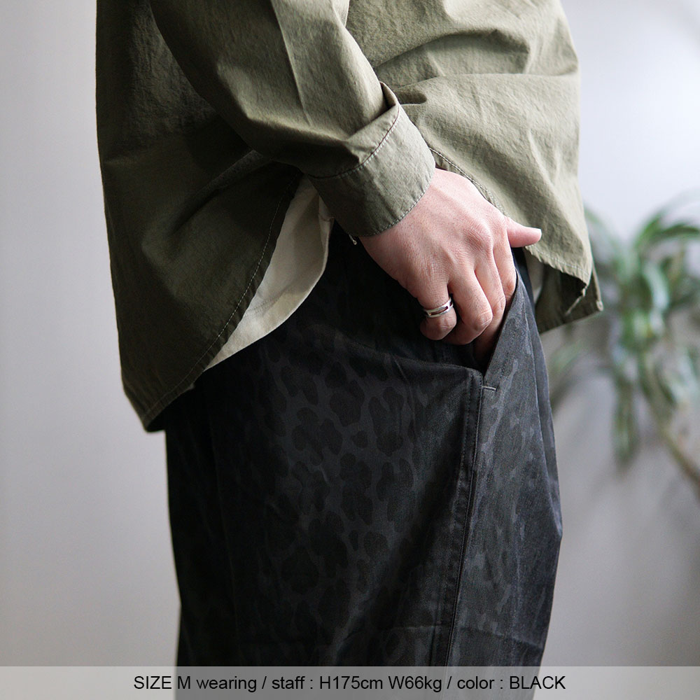 レーヨン特有の落ち感と、 光沢のある上品さを活かした"RAYON TWILL LEOPARD BEACH PANTS"が入荷しました。