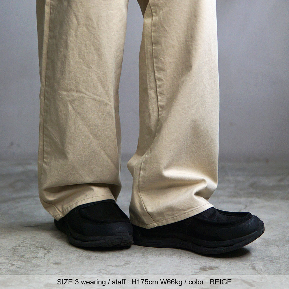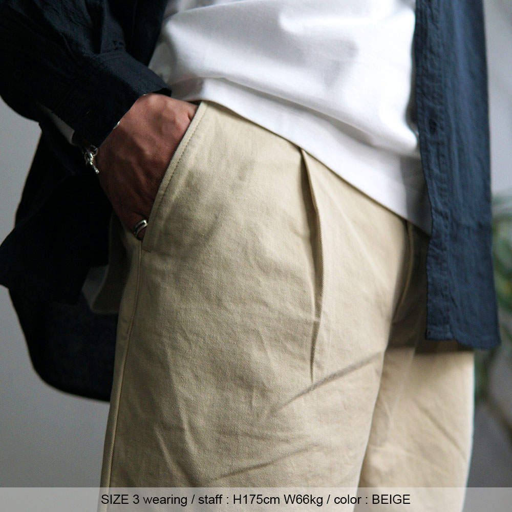 ゴワゴワ感がない自然に落ちるフォルムを形成するチノ素材は、 すっきりとした見た目でありながら履き心地はストレスフリー。