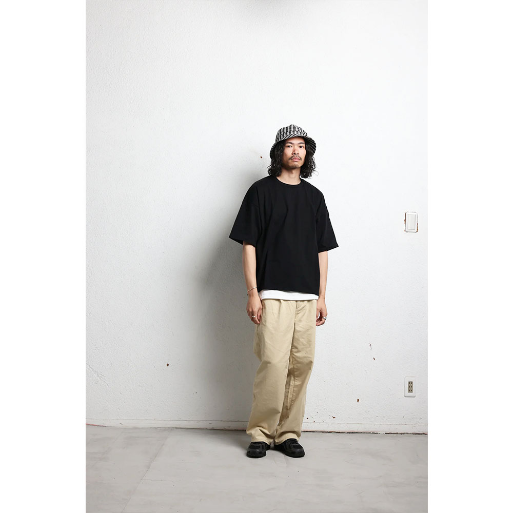 生地にしっかりと目を詰めたチノツイル生地にウォッシュ&タンブラー加工を施し、 余分な硬さをほぐすことで手に取ってすぐから柔らかな足通しを実現。