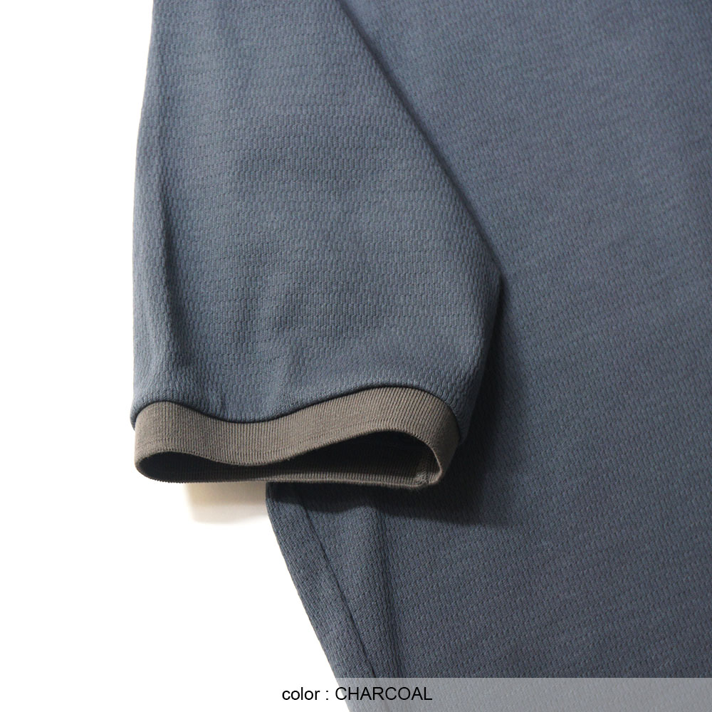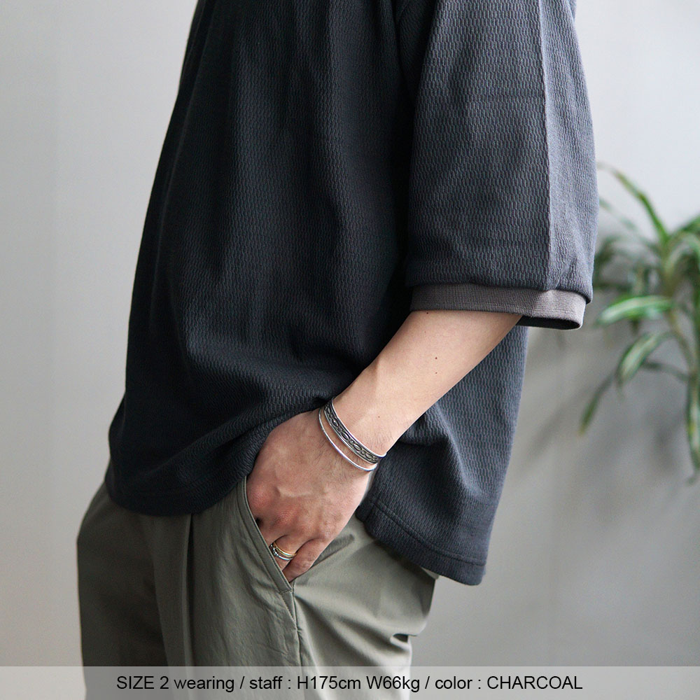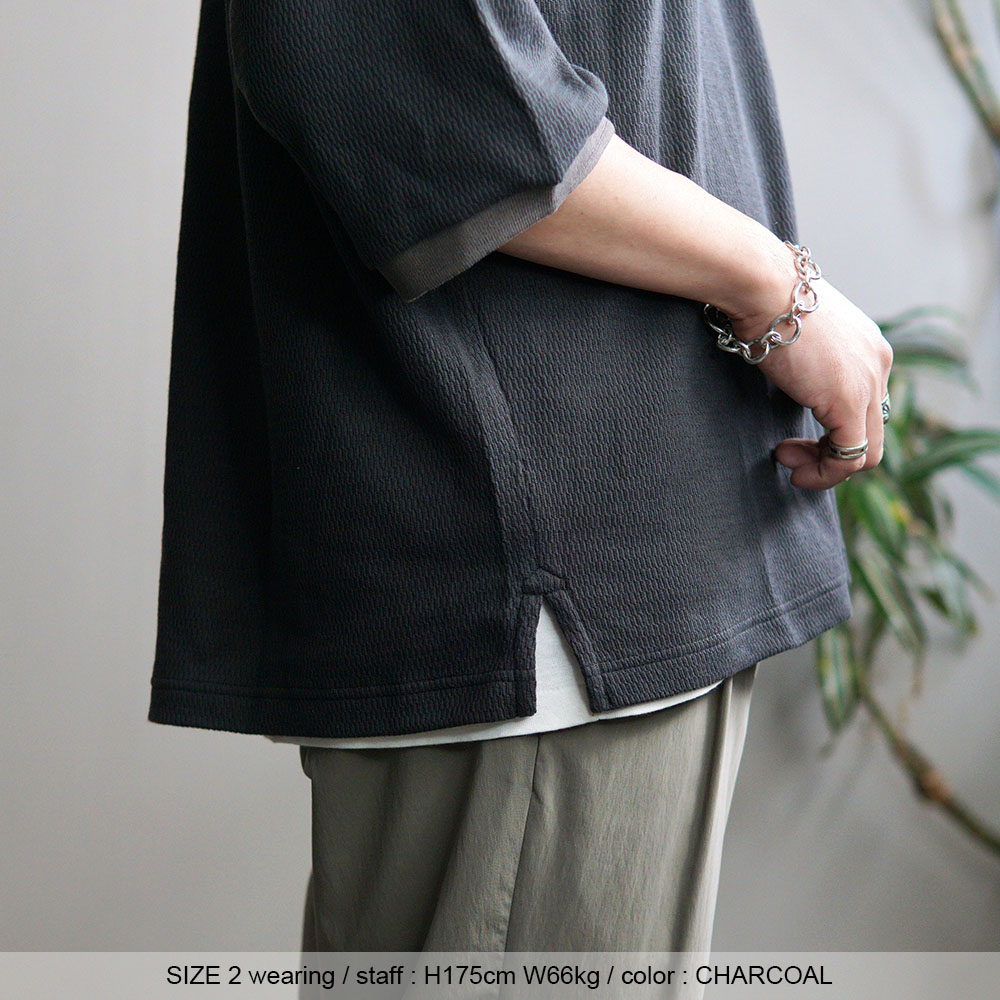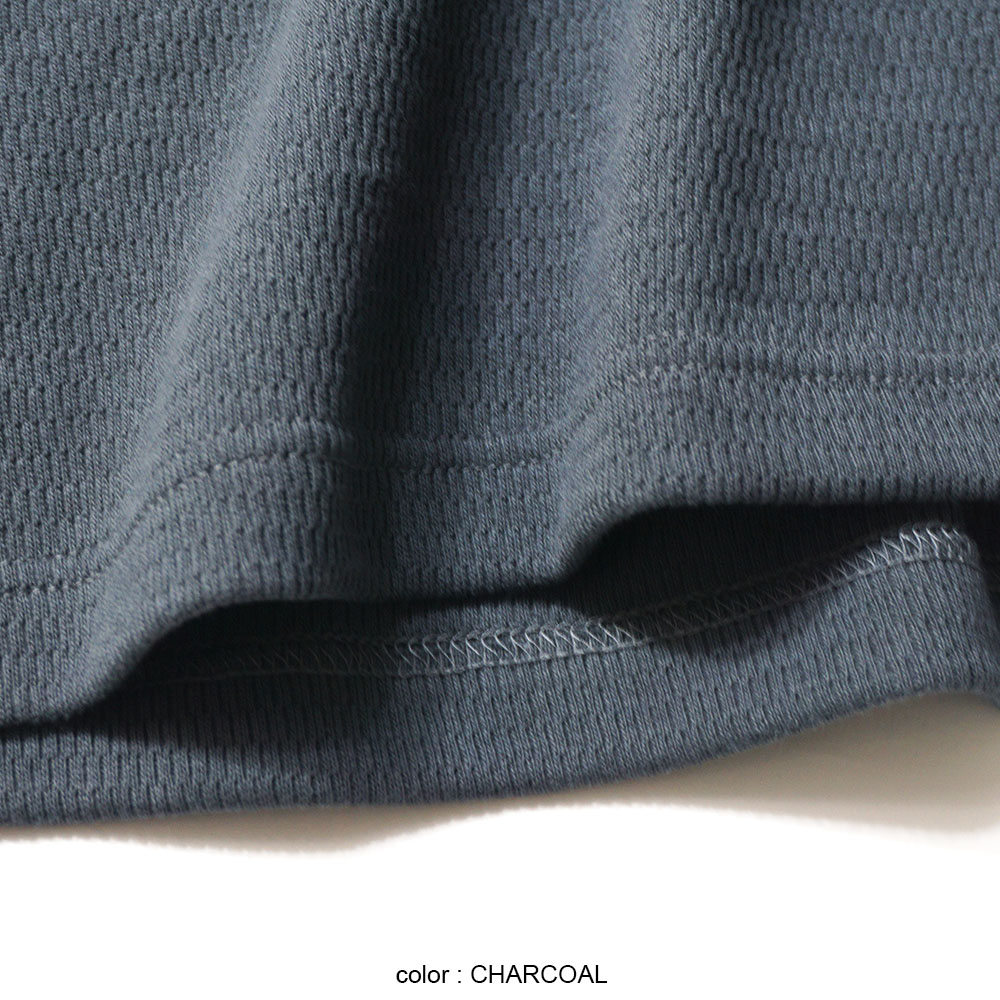 サーマル特有のふんわりとした柔らかさの中に、 軽やかなドライタッチ感があるため、 素肌に触れると非常に心地よく、夏の暑さにもベタつきを感じにくい着心地です。