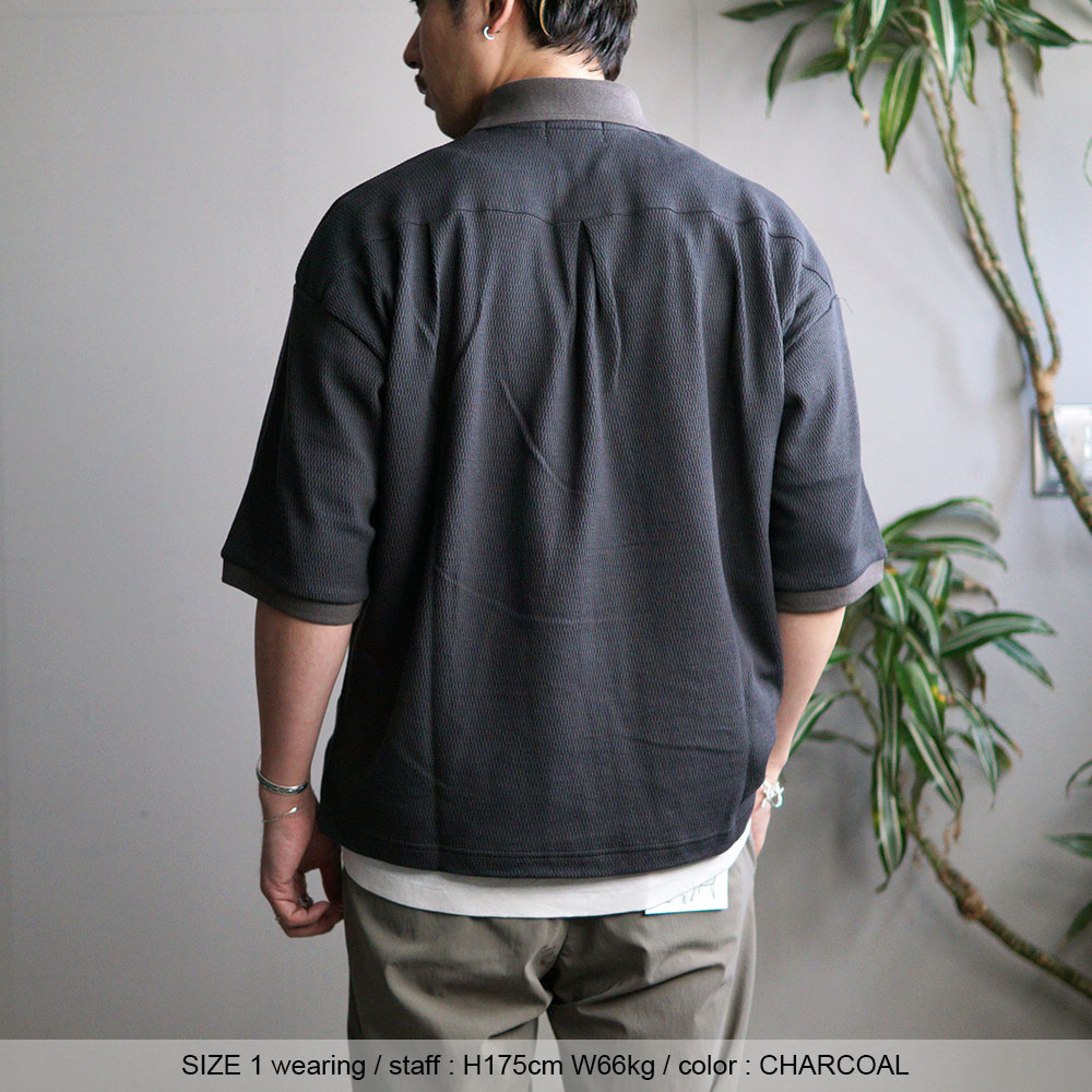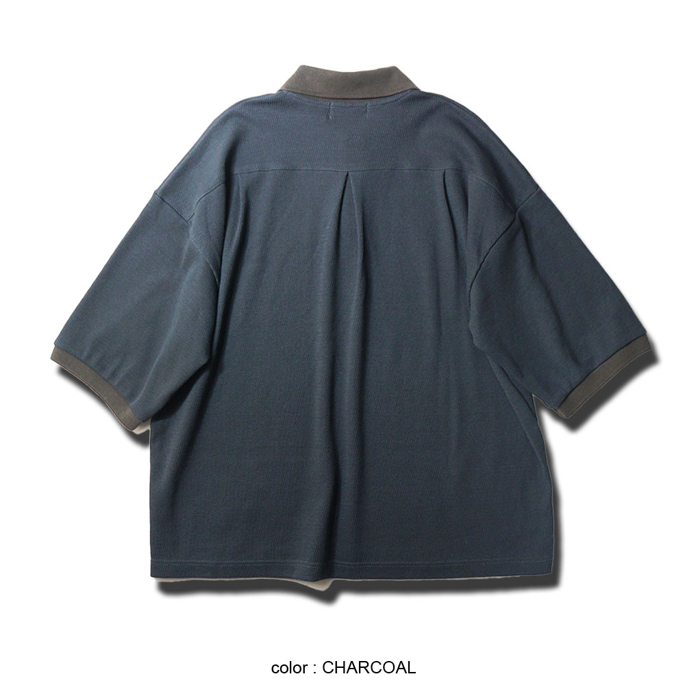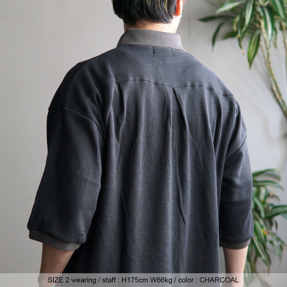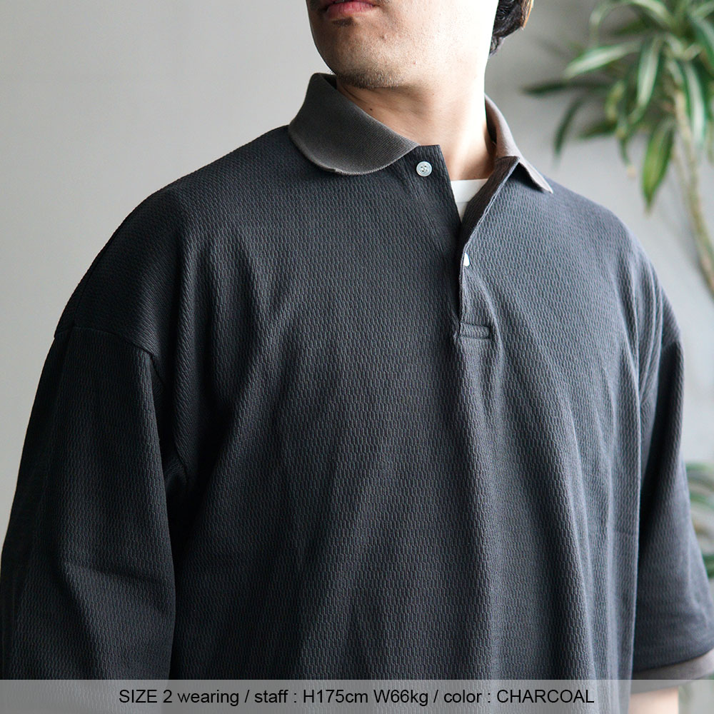 背面ヨーク下に3カ所タックを加え、 後ろ姿に自然な揺れと余裕を生むオーバーサイズポロシャツです。