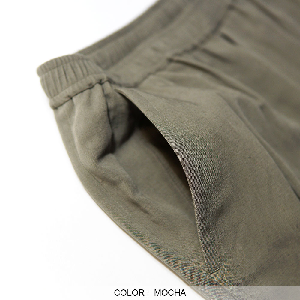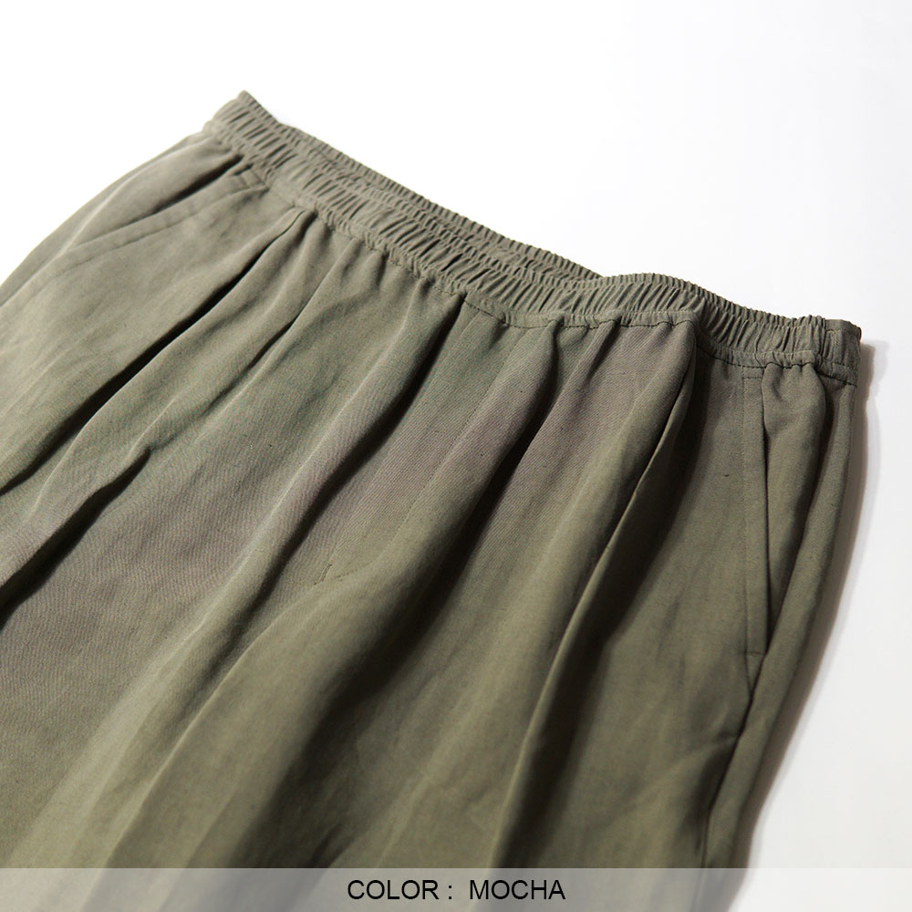 ウエストはゴム仕様でイージーながら、 落ち感のある素材と計算されたラインにより、 ラフになりすぎず品よくまとまります。