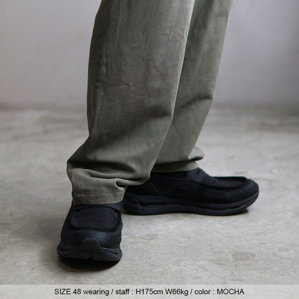 歩くたびにパンツ内部を風が通り抜けるような通気の良さがあり、 真夏でもムレにくく、リネンの肌離れの良いドライな穿き心地を実現しています。