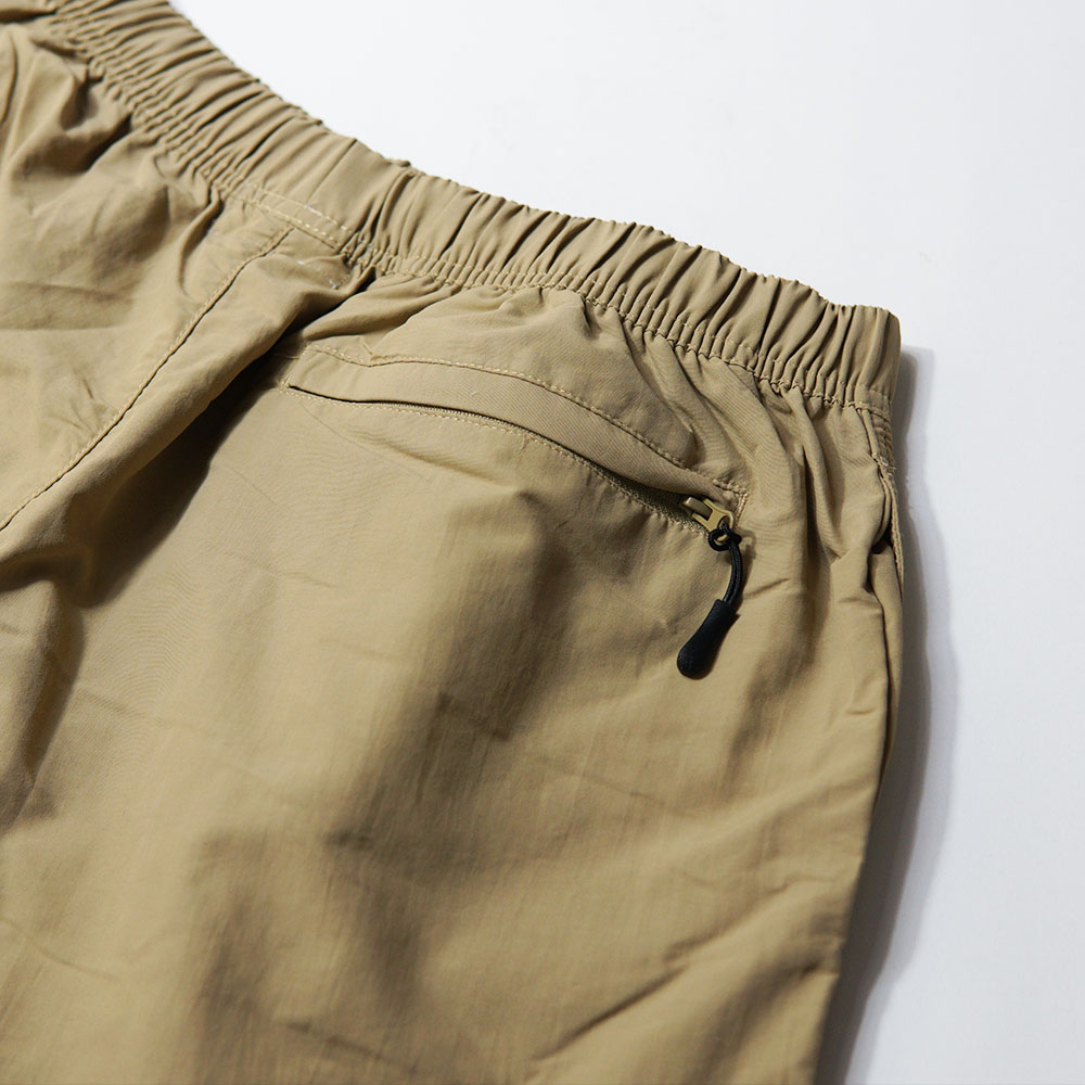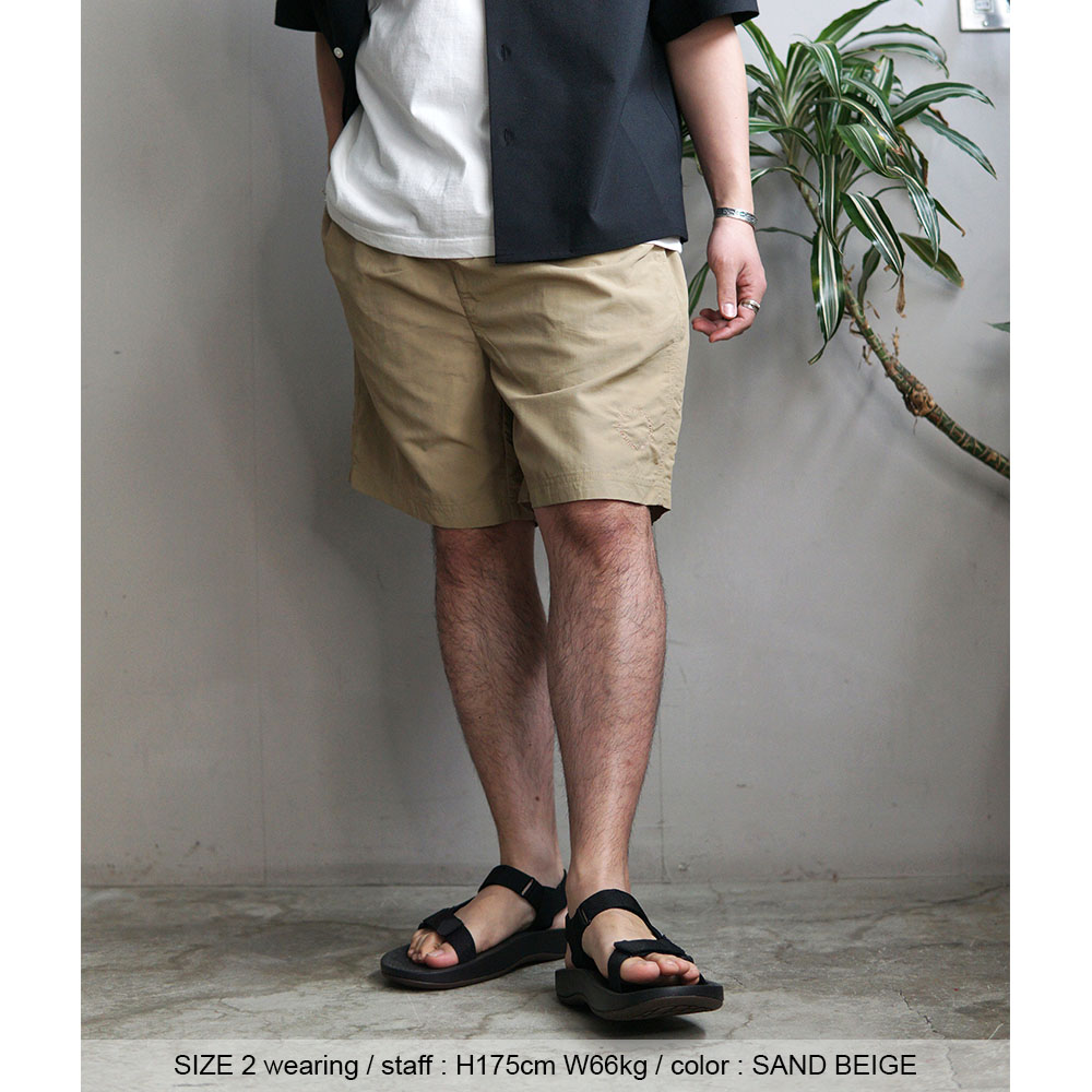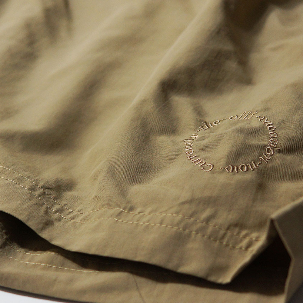 ほんのりシワ感のあるコットンライクな表情で、 いわゆるスポーティーすぎるナイロン素材とは異なり、 街着としても取り入れやすい落ち着いた雰囲気に仕上がっています。