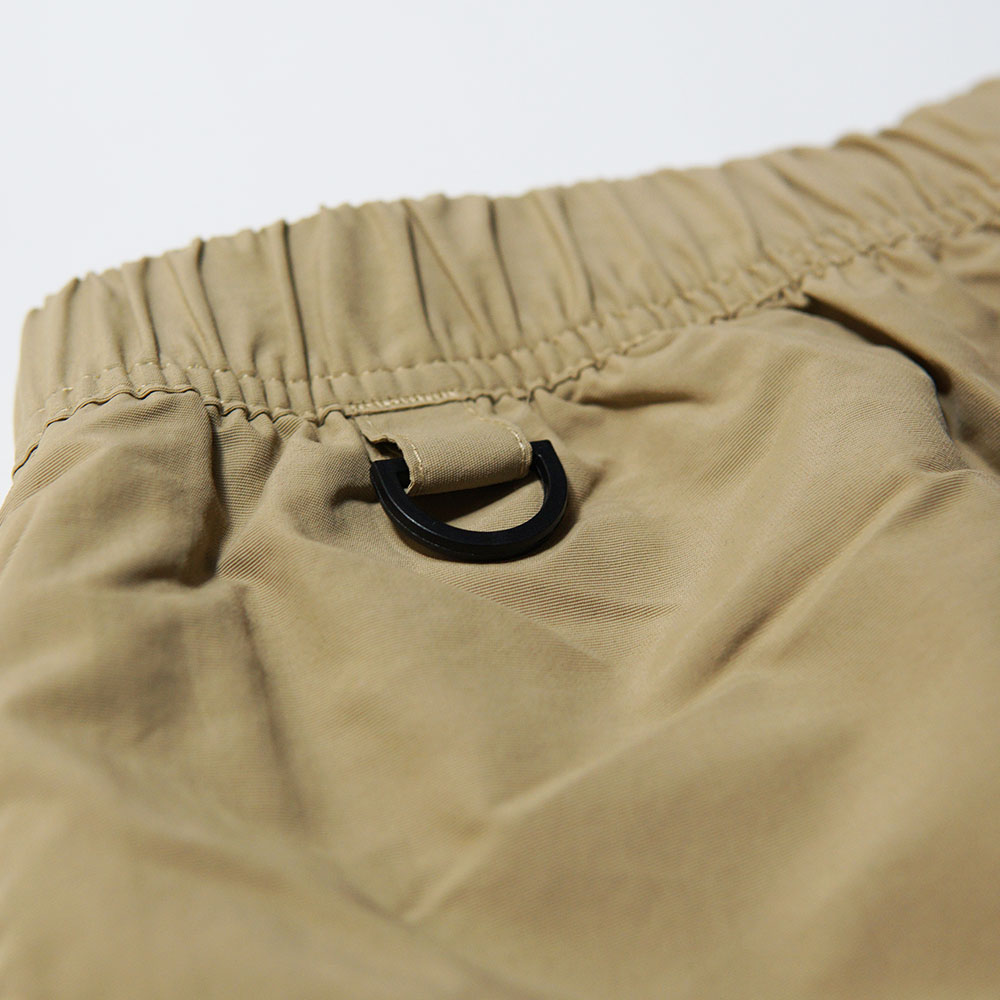ウエストは内側につけたドローコードで調整が可能で、 フロントにはキーチェーンなどを引っかけられるDカン付き。
