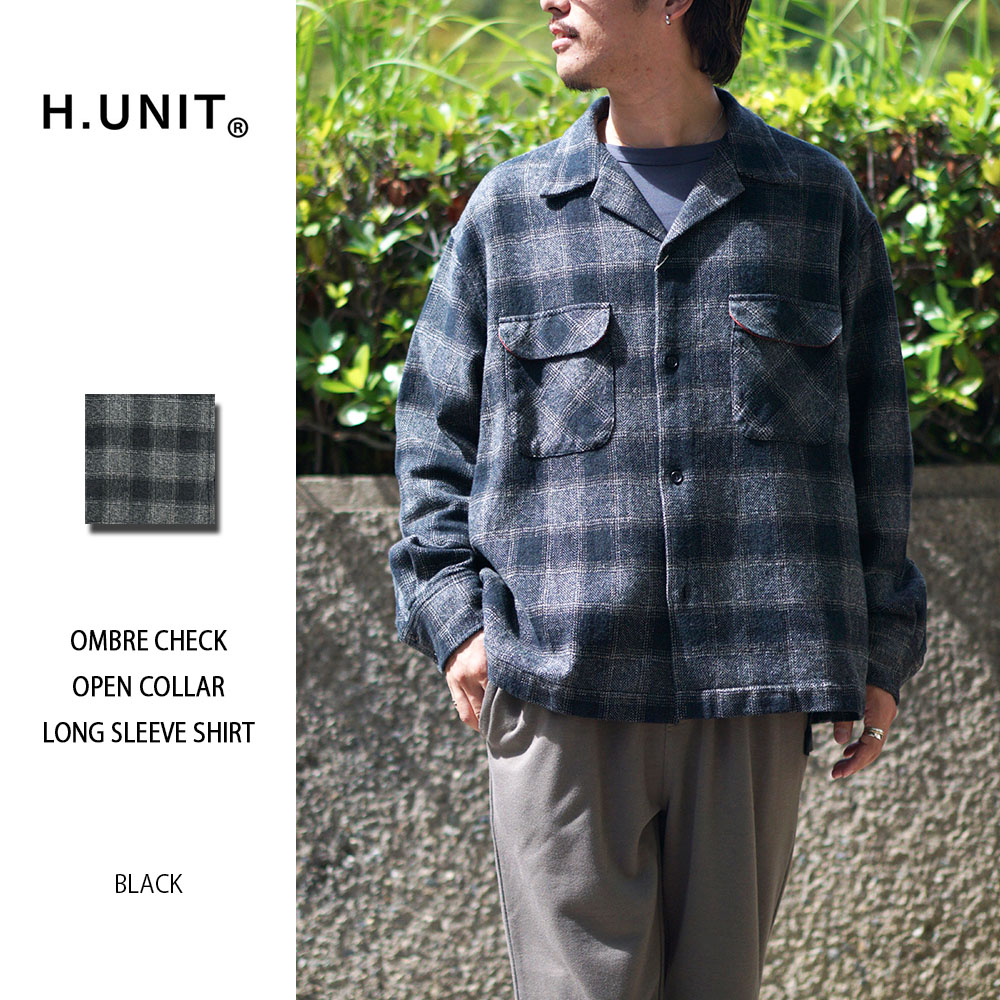 H.UNIT / Ombre Check Open Collar Long Sleeve Shirt / BLACK / H-SH...