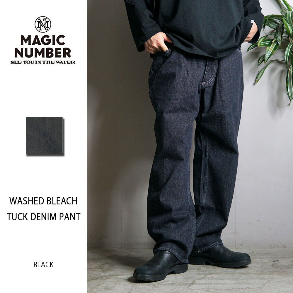 MAGIC NUMBER / WASHED BLEACH TUCK DENIM PANT / BLACK / 25AW-MN019